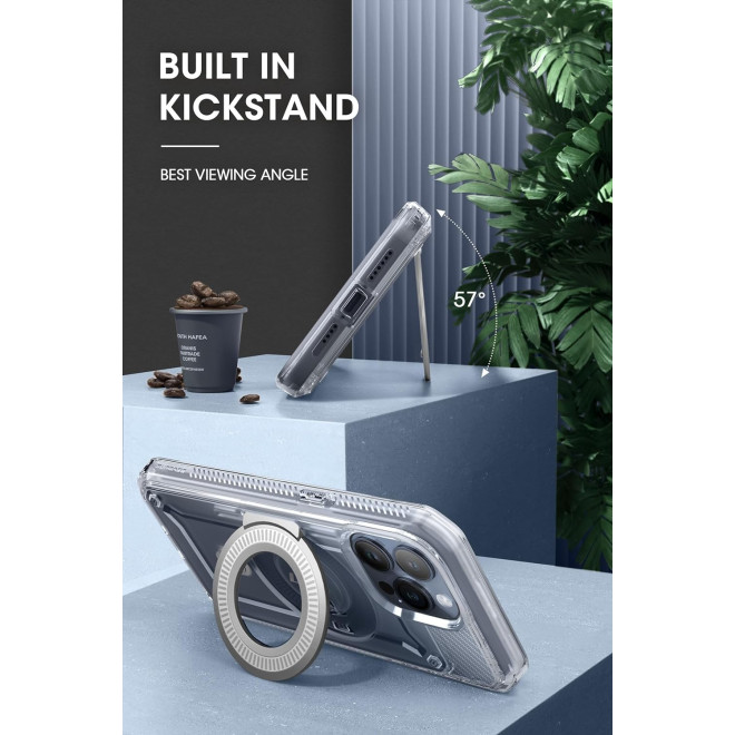 Η εσωτερική θήκη, είναι εξοπλισμένη με ένα μαγνητικό δακτύλιο συμβατό με ασύρματη τεχνολογία MagSafe. Ο μαγνητικός δακτύλιος θα εξασφαλίσει τη μέγιστη απόδοση γρήγορης φόρτισης και την απλή σύνδεση με όλα τα αξεσουάρ με τη λειτουργία MagSafe. Επίσης ο δακτύλιος μπορεί να χρησιμοποιηθεί και ως stand, προκειμένου να τοποθετείτε το κινητό σας με κλίση έως 57°, για τη προβολή ταινιών ή οποιουδήποτε υλικού, επίσης διαθέτει ενσωματωμένο screen protector για εξαιρετική προστασία της οθόνης. Δεν καλύπτει καμία από τις θύρες διασύνδεσης, την κάμερα, το ηχείο ή τις υποδοχές ακουστικών, φορτιστή, κλπ.