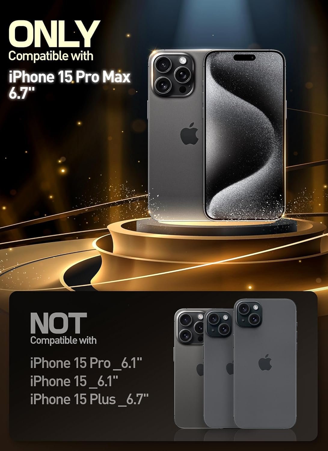 Η θήκη είναι συμβατή μόνο με το iPhone 15 Pro Max και όχι με το iPhone 15, 15 Plus ή 15 Pro.