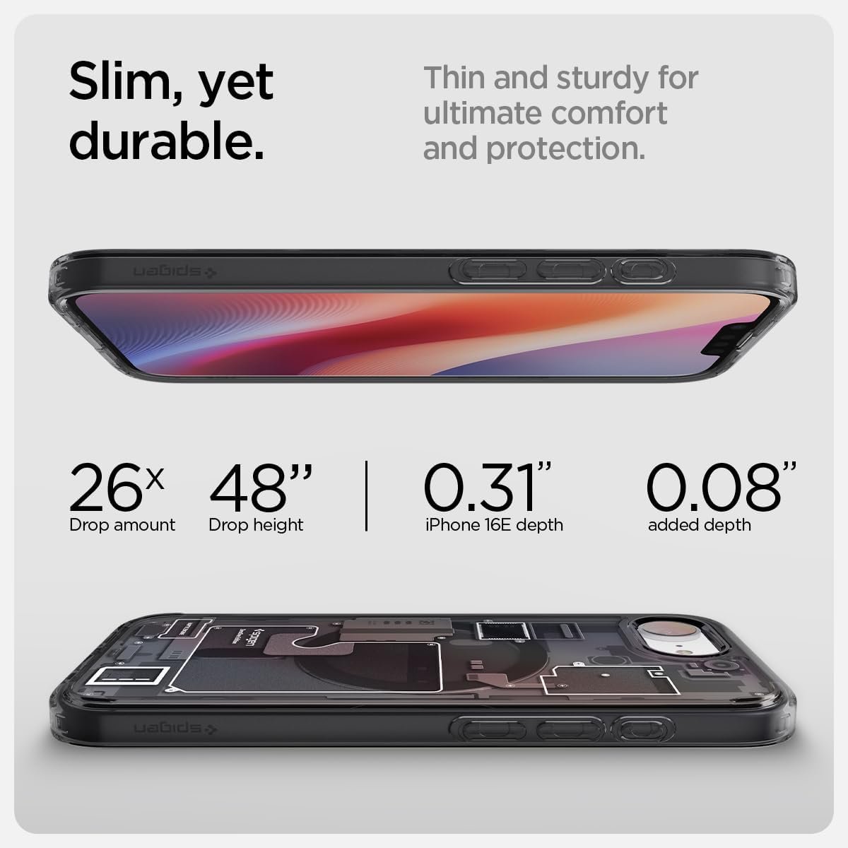 Έχει αυξημένο χείλος περιμετρικά έτσι ώστε να προστατευτεί το κινητό σας σε μία πτώση με την μπροστινή όψη στο έδαφος. Σχεδιασμένη έξυπνα για να είναι λειτουργική και πρακτική ενώ παράλληλα είναι λεπτή και κομψή για δίνει στο αγαπημένο σας iPhone 16e μια μοναδική εμφάνιση.