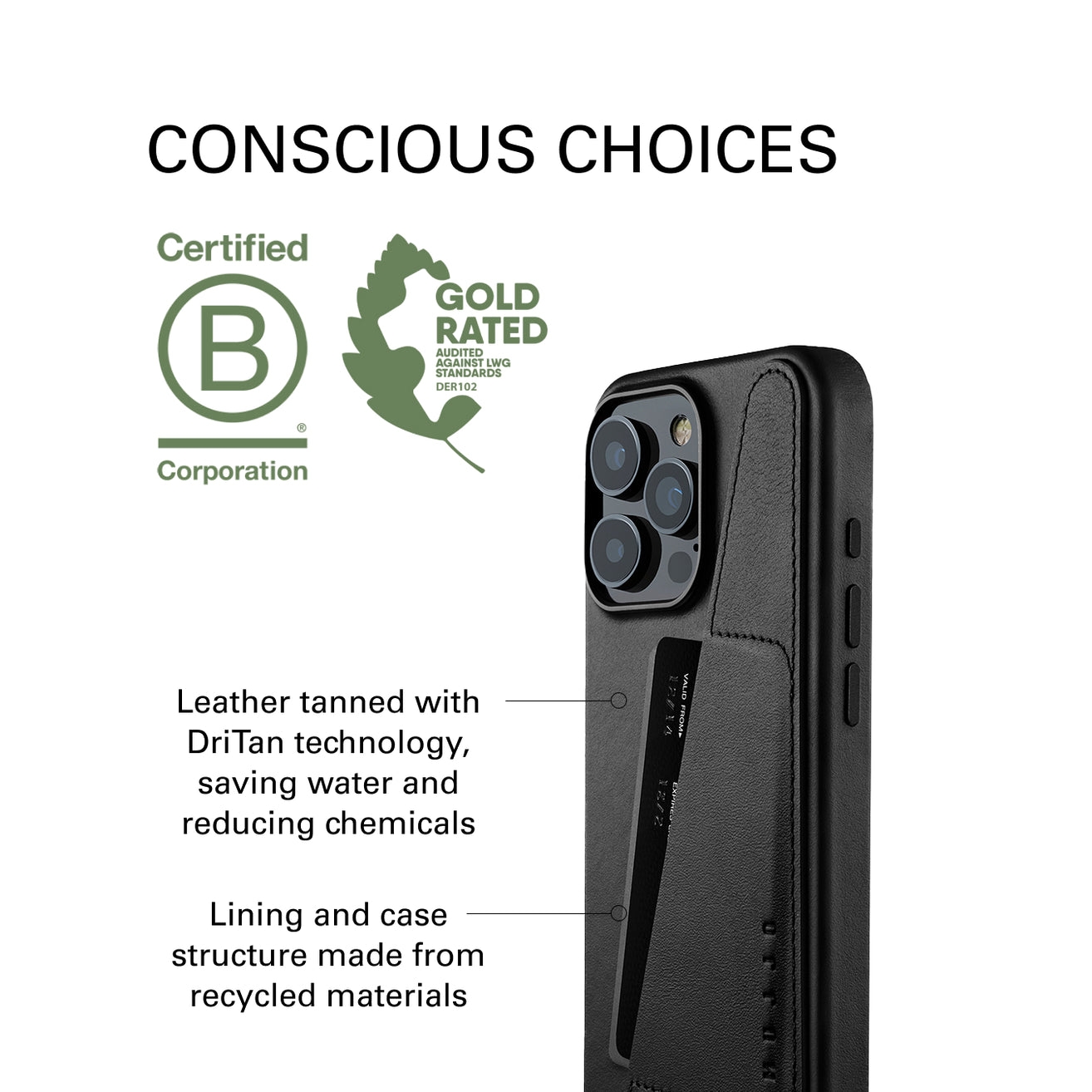 Σημείωση: Λόγω του ότι το δέρμα είναι αληθινό, καμία θήκη της MUJJO δεν είναι εντελώς όμοια με την άλλη - μπορείτε να δείτε παραλλαγές της υφής κόκκων ή διαφορετικές φυσικές γραμμές στο δέρμα. Για την προσάρτηση της θήκης σε αξεσουάρ και φορτιστή MagSafe, οι κάρτες πρέπει να αφαιρεθούν πριν από τη χρήση.