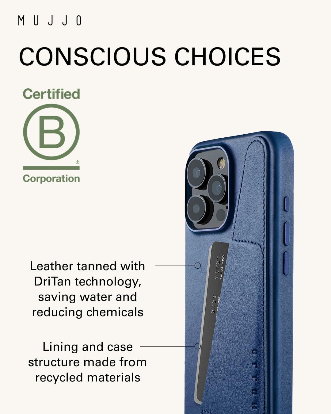 Σημείωση: Λόγω του ότι το δέρμα είναι αληθινό, καμία θήκη της MUJJO δεν είναι εντελώς όμοια με την άλλη - μπορείτε να δείτε παραλλαγές της υφής κόκκων ή διαφορετικές φυσικές γραμμές στο δέρμα. Για την προσάρτηση της θήκης σε αξεσουάρ και φορτιστή MagSafe, οι κάρτες πρέπει να αφαιρεθούν πριν από τη χρήση.