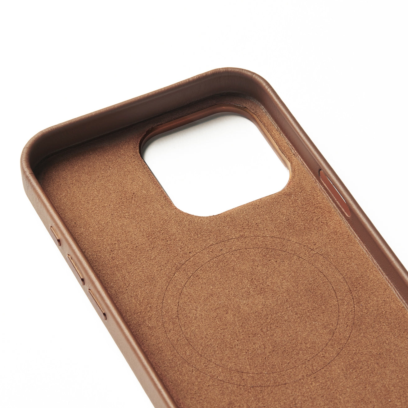 Το εσωτερικό της θήκης είναι επενδεδυμένο με Ιαπωνικές μικροΐνες, ένα υλικό που είναι ιδιαίτερα ανθεκτικό αλλά και εξαιρετικά ελαφρύ. Με μία εκλεπτυσμένη υφή, που πλησιάζει εκείνη του μεταξιού, το υλικό αυτό σας προσφέρει πολυτέλεια και άνεση. Διαθέτει ενσωματωμένο μαγνήτη συμβατό με την ασύρματη φόρτιση MagSafe και με την προσάρτηση σε αξεσουάρ MagSafe. Επίσης, μετατρέπει το iPhone σας σε πορτοφόλι, δηλαδή χωράει 2 έως 3 τραπεζικές κάρτες ή ταυτότητα.