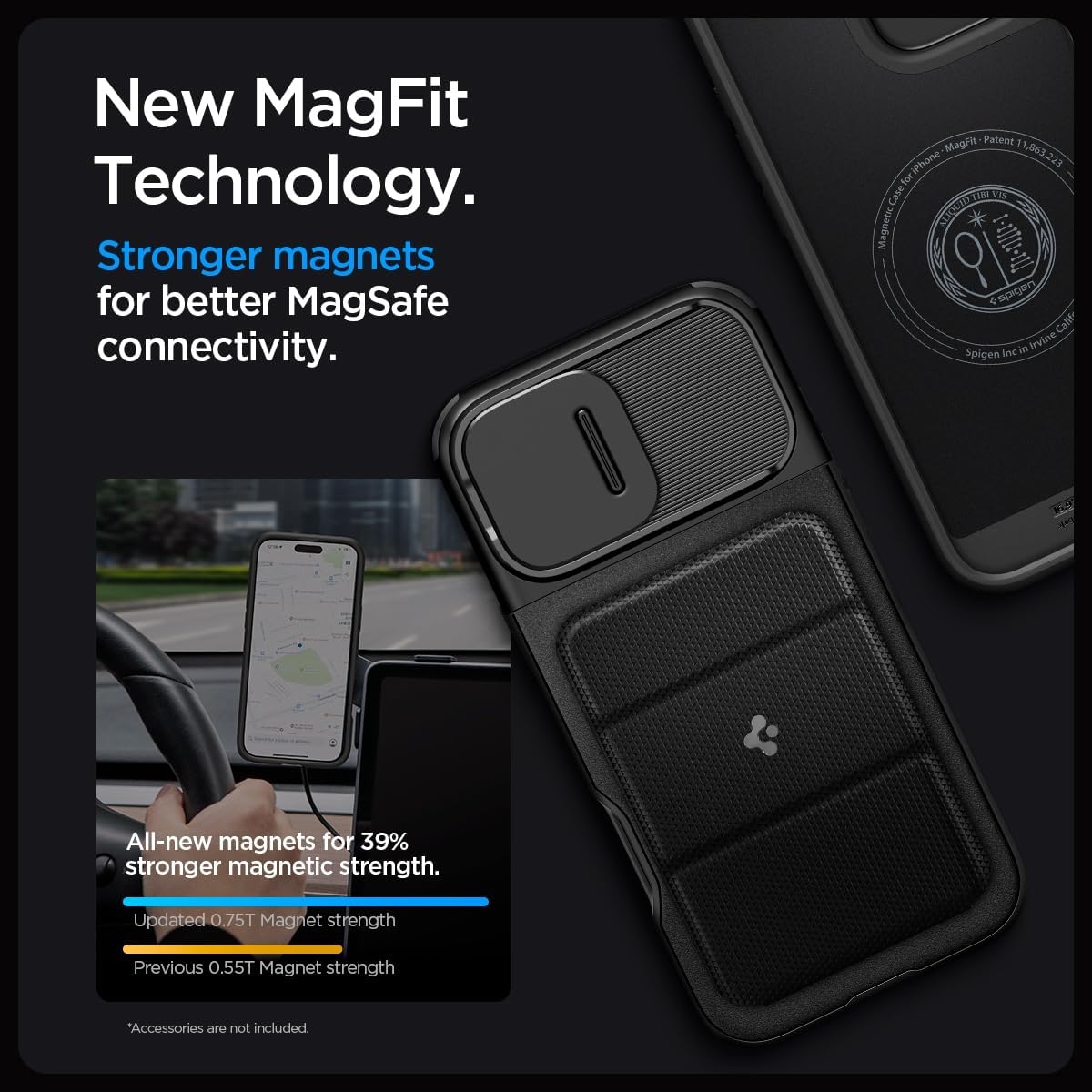 Η θήκη Optik Armor MagFit της Spigen είναι κατασκευασμένη για να εφαρμόζει τέλεια στο iPhone 16 Pro Max και να το προστατεύει από την καθημερινή χρήση και αποτελεσματικά, χωρίς να προσθέτει επιπλέον όγκο στη συσκευή σας. Διαθέτει ενσωματωμένο μαγνήτη συμβατό με την ασύρματη φόρτιση MagSafe και με την προσάρτηση σε αξεσουάρ MagSafe.