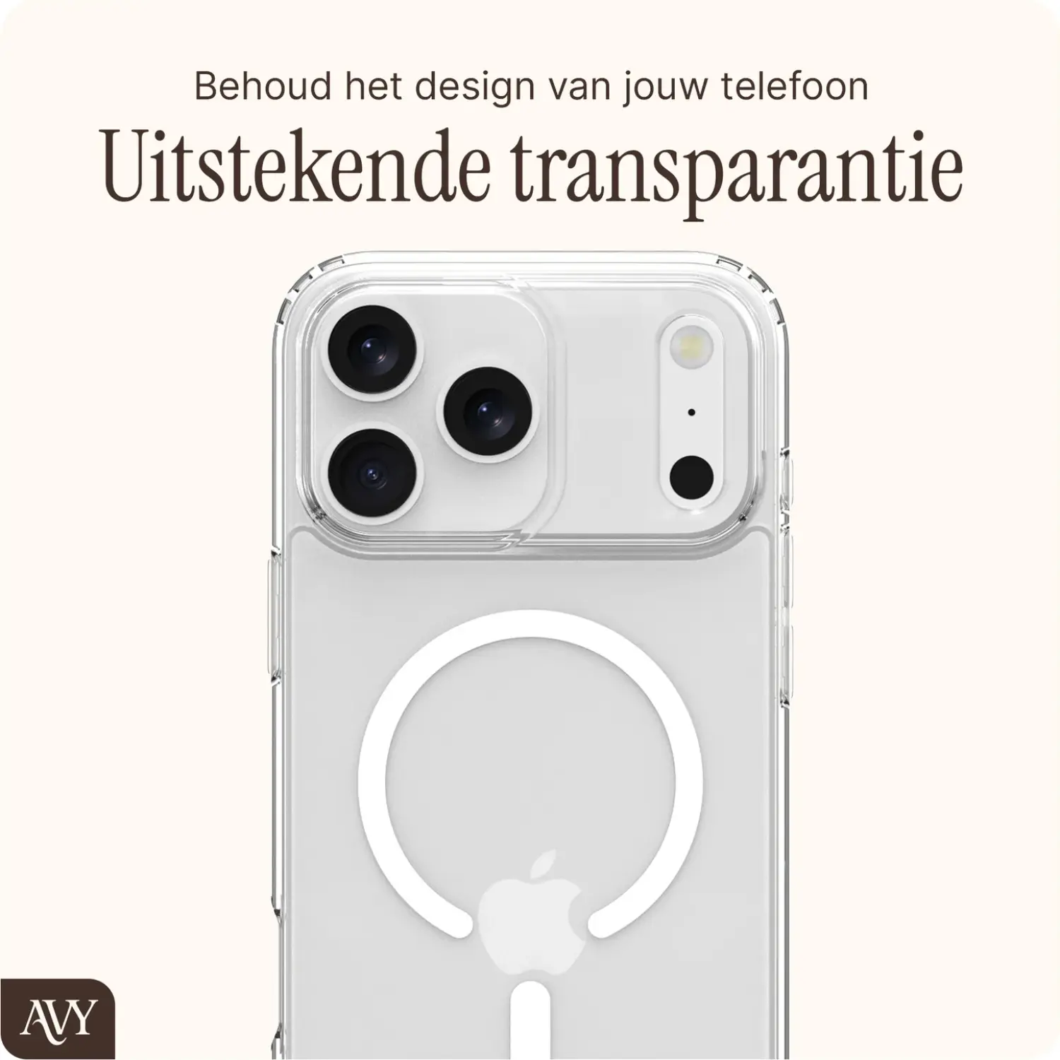 Προστατέψτε τo αγαπημένο σας iPhone 17 Pro και διατηρήστε το στην αρχική του κατάσταση, με την κομψή διάφανη θήκη της AVY! Κατασκευασμένη από PC στην πλάτη και TPU περιμετρικά της οθόνης, για προστασία από χτυπήματα και γρατζουνιές. Διαθέτει μαγνητικό δακτύλιο, συμβατό με αξεσουάρ MagSafe και Qi2, όπως φορτιστή, βάσεις γραφείου, αυτοκινήτου και finger holder.