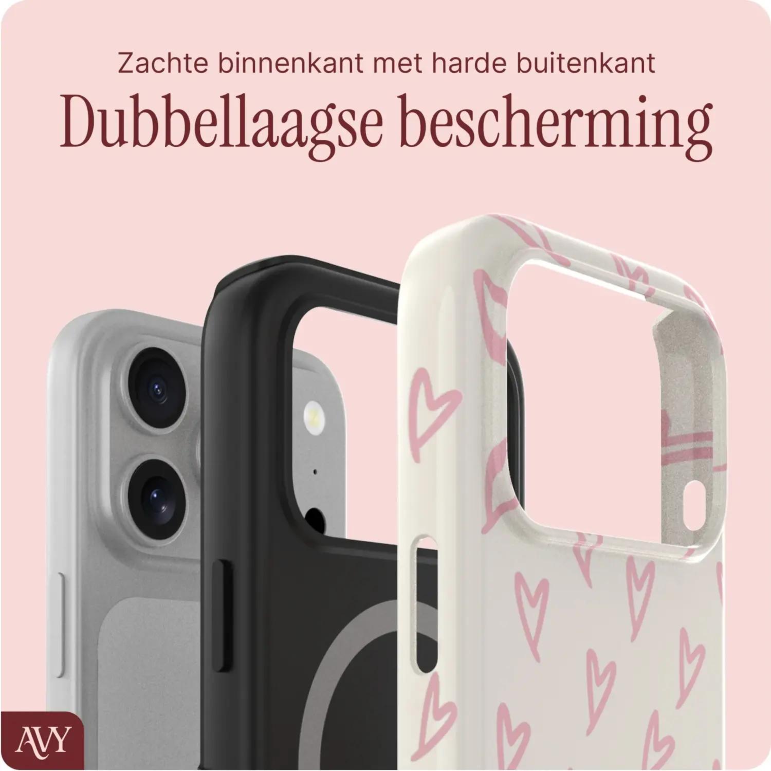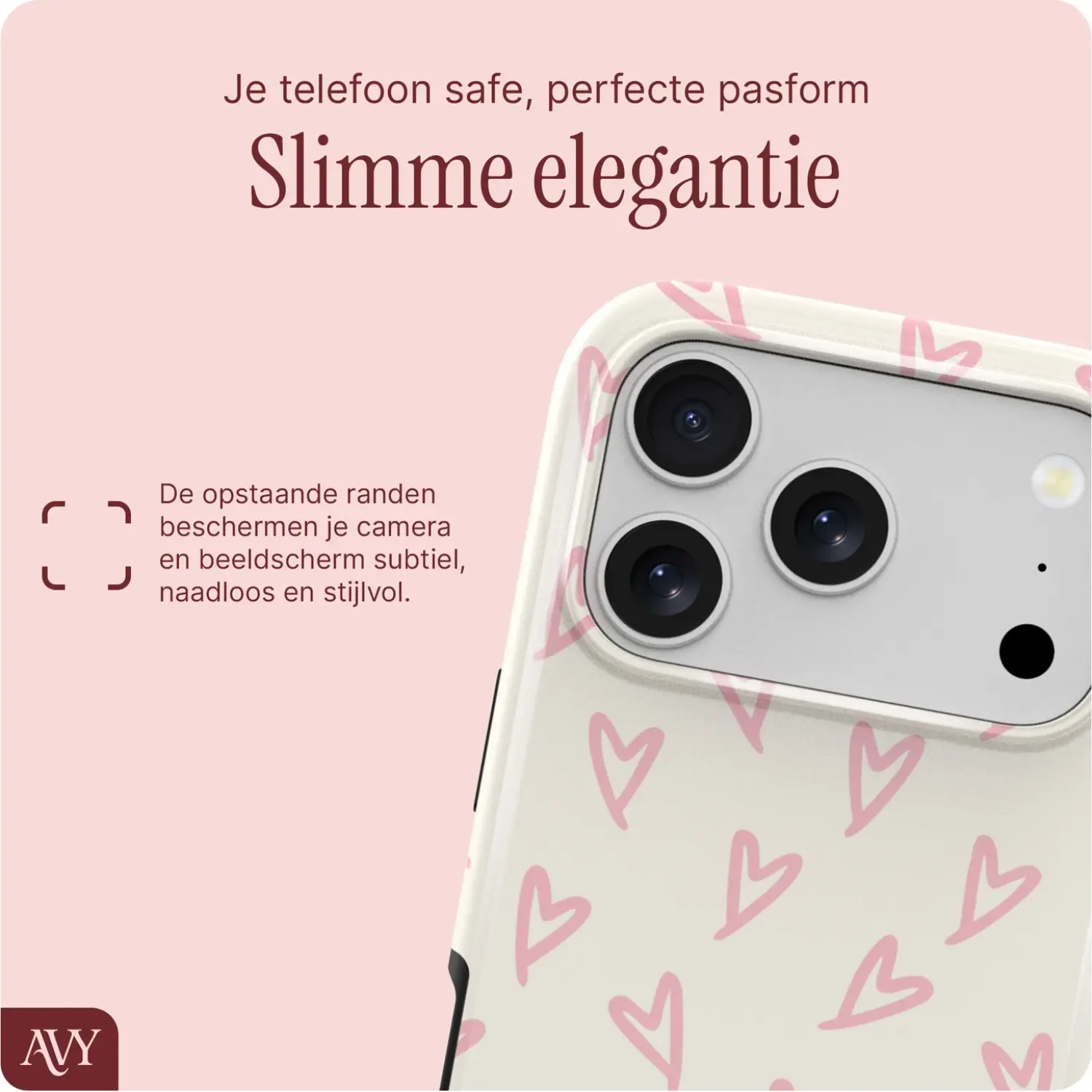 Η θήκη εφαρμόζει τέλεια στο κινητό σας χωρίς να αλλοιώνει τις διαστάσεις του, ενώ το υπερυψωμένο χείλος γύρω από την κάμερα προσφέρει επιπλέον προστασία από τις επίπεδες επιφάνειες. Ο διπλής στρώσης σχεδιασμός της, προσφέρει εξαιρετική αντοχή και προστασία από την καθημερινή χρήση. Πρόκειται για μια premium, σκληρή θήκη με ένα μοναδικό σχέδιο καρδιάς που θα αναβαθμίσει την εμφάνισή σας!