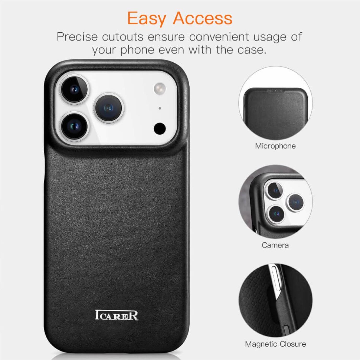 Η θήκη Curved Edge Leather Folio with Magsafe της iCarer είναι μία πολυτελή MagSafe Flip θήκη, ειδικά σχεδιασμένη για το αγαπημένο σας iPhone 17 Pro Max. Είναι μία εξαιρετικά κομψή θήκη, η οποία θα προσθέσει λάμψη και πλήρη προστασία στο αγαπημένο σας smartphone.