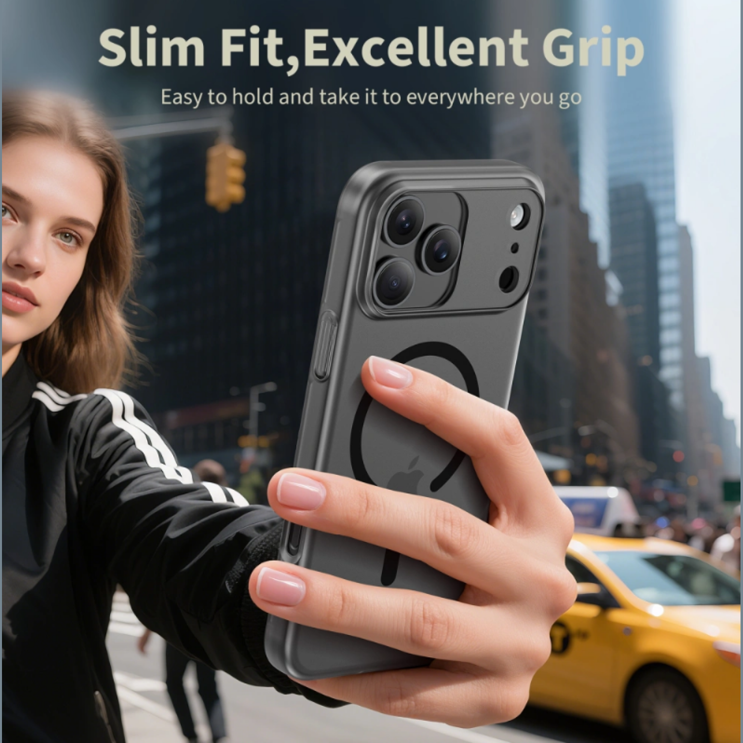 Η λεπτή θήκη MagSlim MagSafe της Tech-Protect σε χρώμα Matte / Black, έχει μινιμαλιστική σχεδίαση και εφαρμόζει τέλεια στο iPhone 17 Pro προστατεύοντάς το από την καθημερινή χρήση!