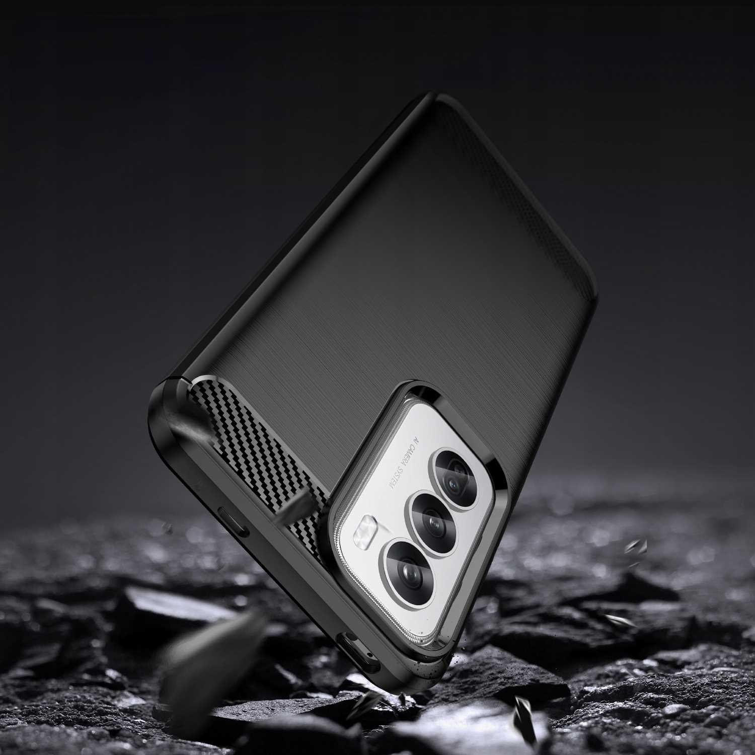 Είναι κατασκευασμένη από εύκαμπτη θερμοπλαστική πολυουρεθάνη TPU, η οποία απορροφά τους κραδασμούς. Διαθέτει ένα μοναδικό φινίρισμα από ανθρακονήματα εξωτερικά, ενώ εσωτερικά έχει έναν κυψελοειδή σχεδιασμό, ώστε να προστατεύει το Oppo Reno12 Pro από γρατζουνιές, φθορές, πτώσεις ή χτυπήματα.