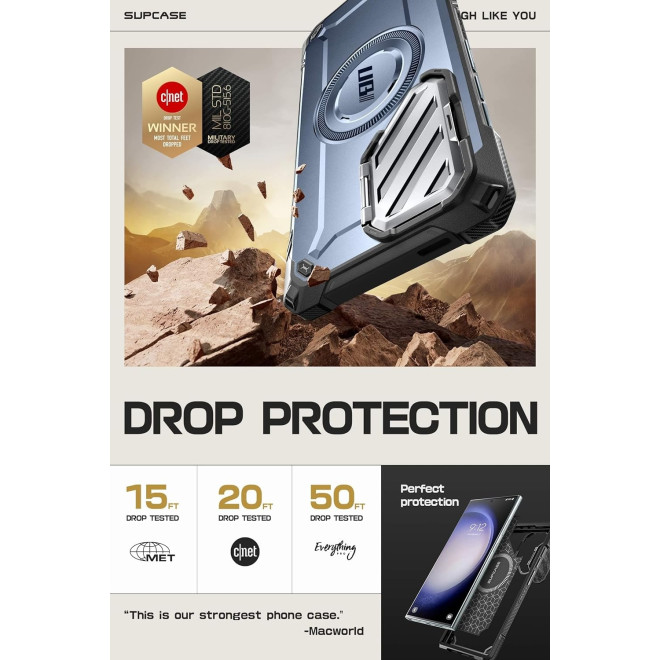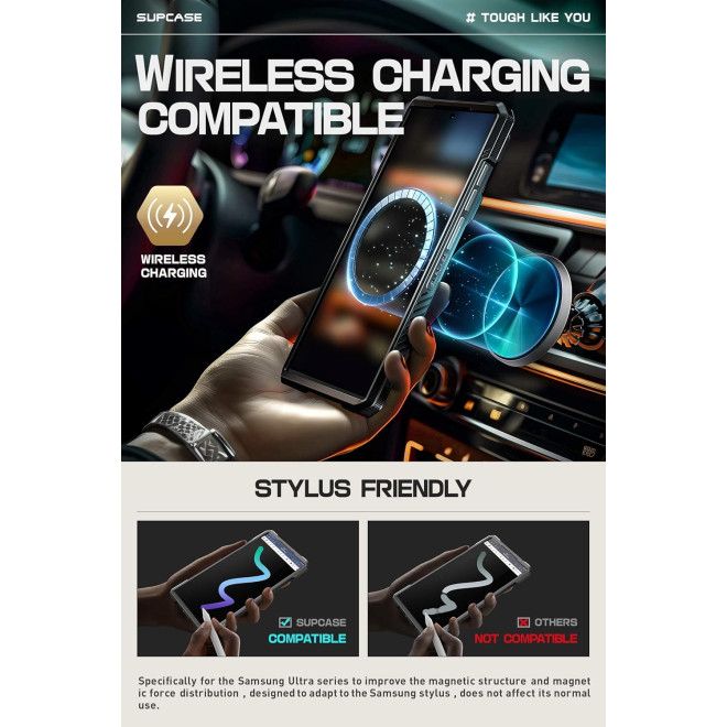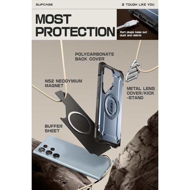 Η ανθεκτική MagSafe θήκη Unicorn Beetle XT Mag από την Supcase, είναι ειδικά σχεδιασμένη για το Samsung Galaxy S24 Ultra. Έχει κατασκευαστεί από ένα συνδυασμό μαλακού TPU και πολυκαρβονικού πλαστικού PC, για να είναι εξαιρετικά ανθεκτική σε σκόνες, πτώσεις και χτυπήματα.