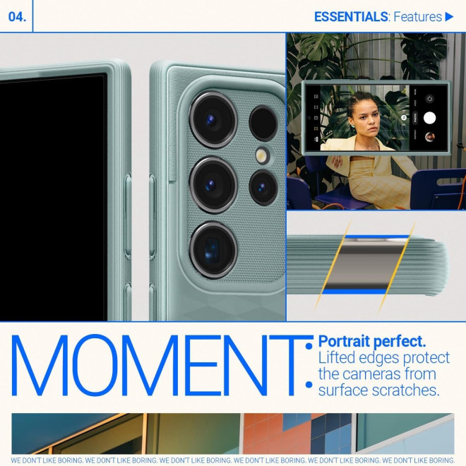 Διαθέτει υπερυψωμένο χείλος γύρω από το φακό της κάμερας και περιμετρικά της οθόνης, ώστε να προστατεύει το κινητό σε ενδεχόμενη πτώση. Διαθέτει όλες τις απαραίτητες εγκοπές ώστε να έχετε πρόσβαση σε όλες τις λειτουργίες του τηλεφώνου σας, ενώ τα πλαϊνά κουμπιά είναι καλυμμένα για προστασία από σκόνη.