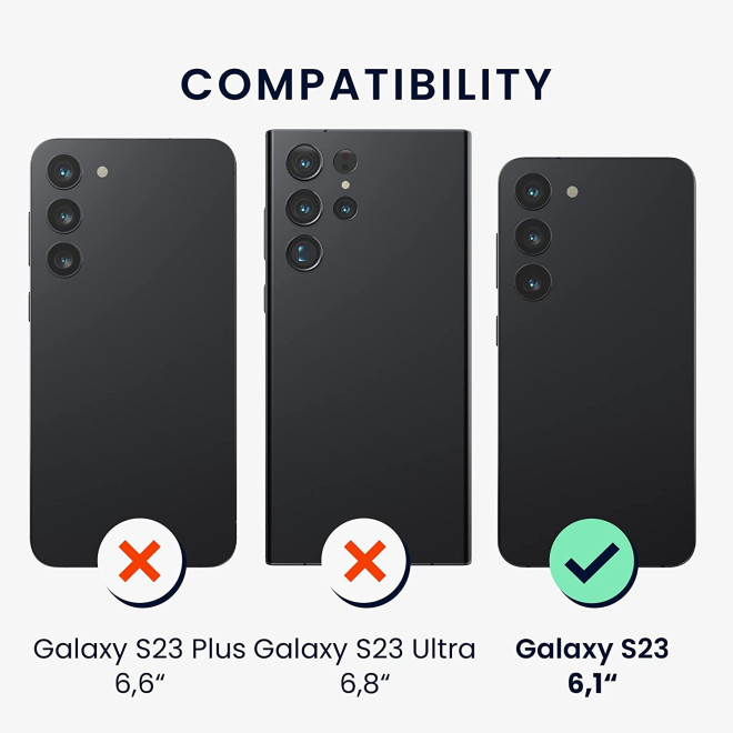 Η θήκη είναι συμβατή μόνο με το Samsung Galaxy S23 και όχι με το Samsung Galaxy S23 Plus ή S23 Ultra.