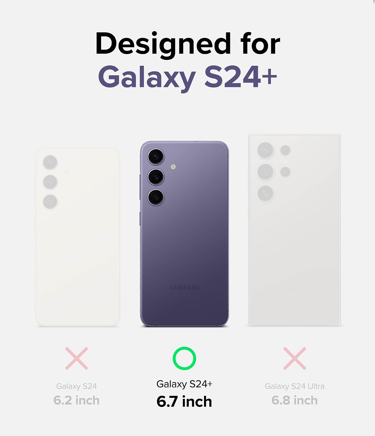 Η θήκη είναι συμβατή μόνο με το Samsung Galaxy S24 Plus και όχι με το Samsung Galaxy S24 ή S24 Ultra.