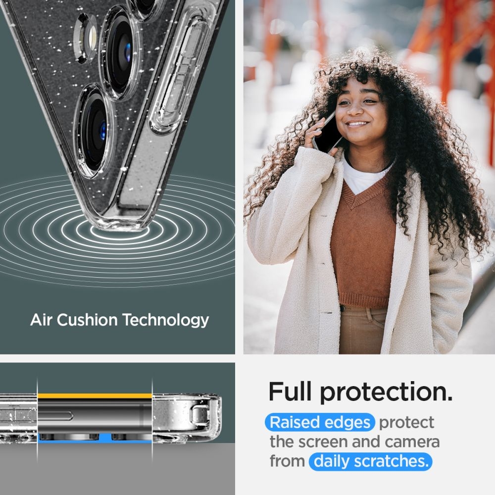 Η θήκη της Spigen είναι κατασκευασμένη για να εφαρμόζει τέλεια στο Samsung Galaxy S24 και να το προστατεύει χωρίς να προσθέτει επιπλέον όγκο στη συσκευή! Προσθέστε λίγη λάμψη στη συσκευή σας και ξεχωρίστε με την διάφανη glitter θήκη!