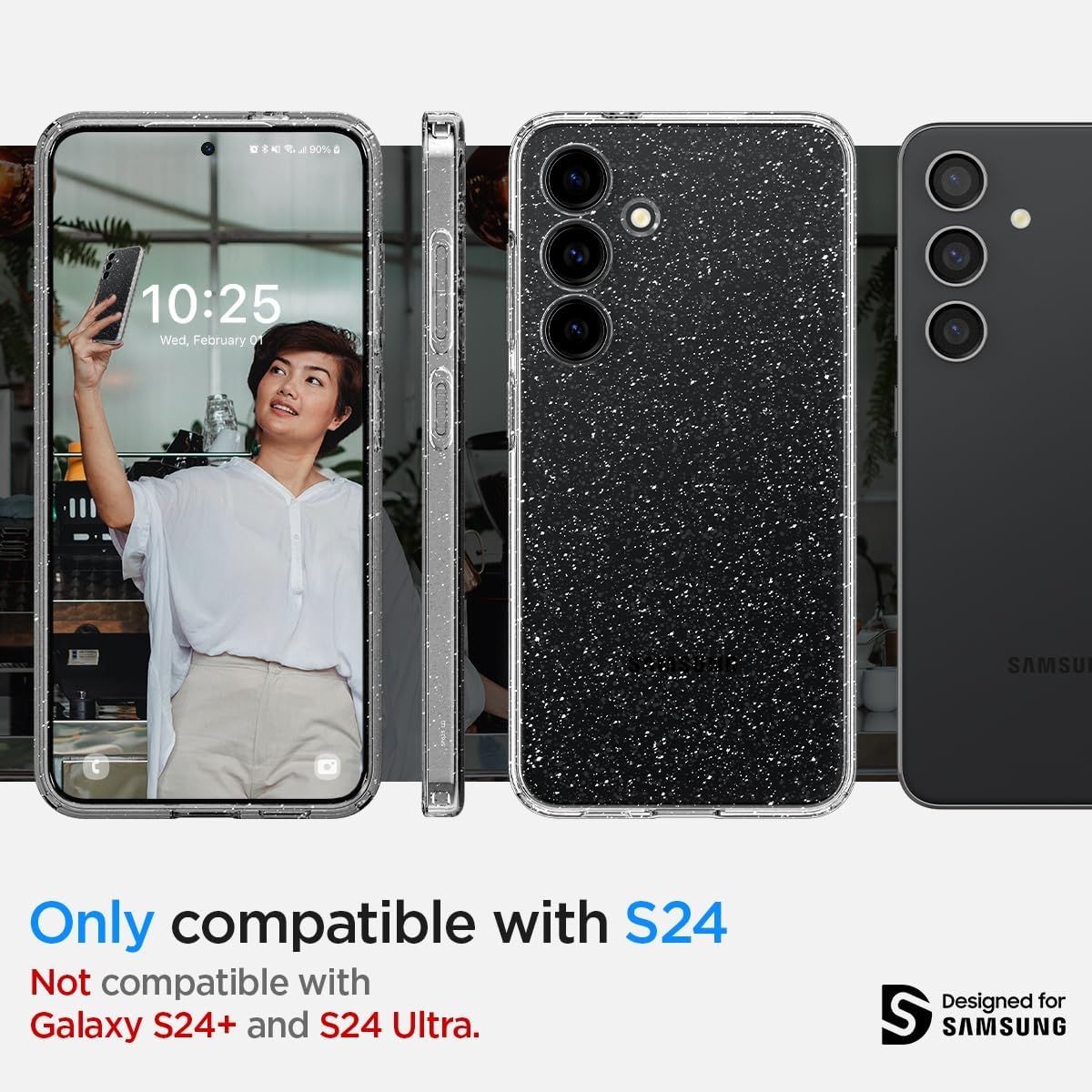 Η θήκη είναι συμβατή μόνο με το Samsung Galaxy S24 και όχι με το Samsung Galaxy S24 Ultra ή S24 Plus.