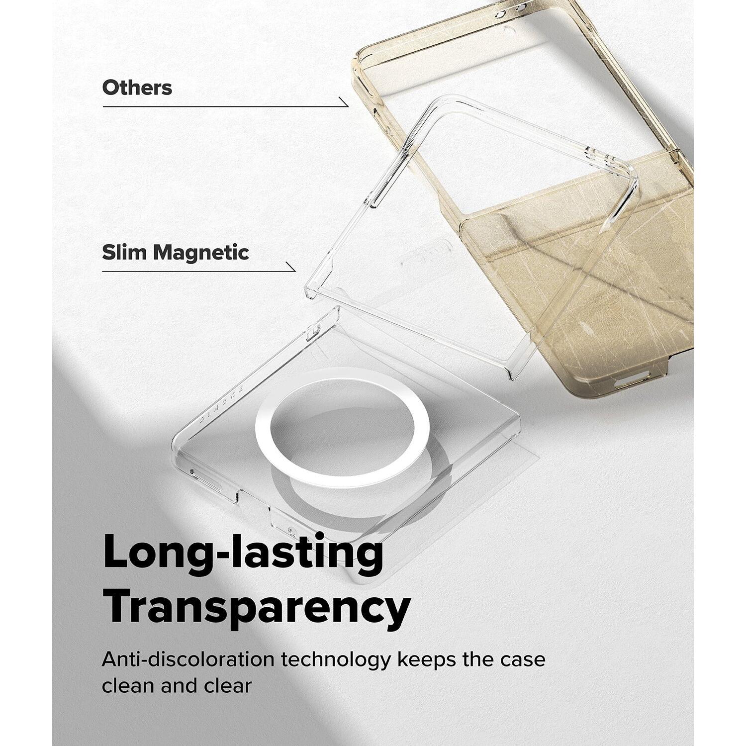 Η θήκη Slim Magnetic της Ringke είναι κατασκευασμένη για να εφαρμόζει τέλεια στο αγαπημένο σας Samsung Galaxy Z Flip7 και να το προστατεύει από την καθημερινή χρήση, τις σκόνες και τα χτυπήματα, χωρίς να προσθέσει όγκο στη συσκευή σας!