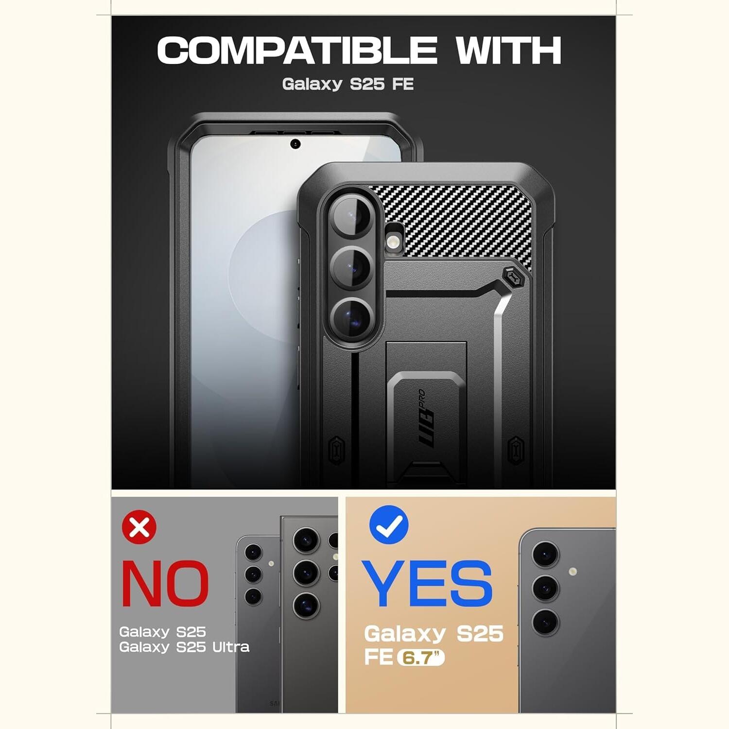 Η θήκη είναι συμβατή μόνο με το Samsung Galaxy S25 FE και όχι με το Samsung Galaxy S25, S25 Edge, S25 Plus ή S25 Ultra.