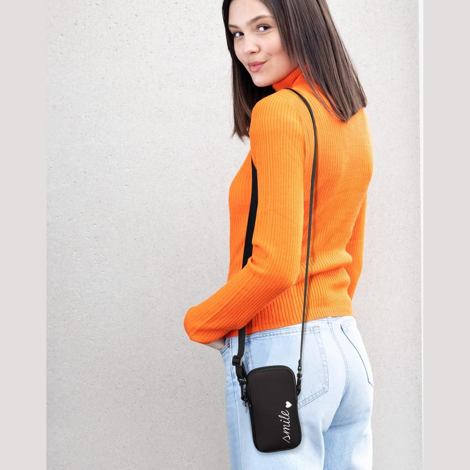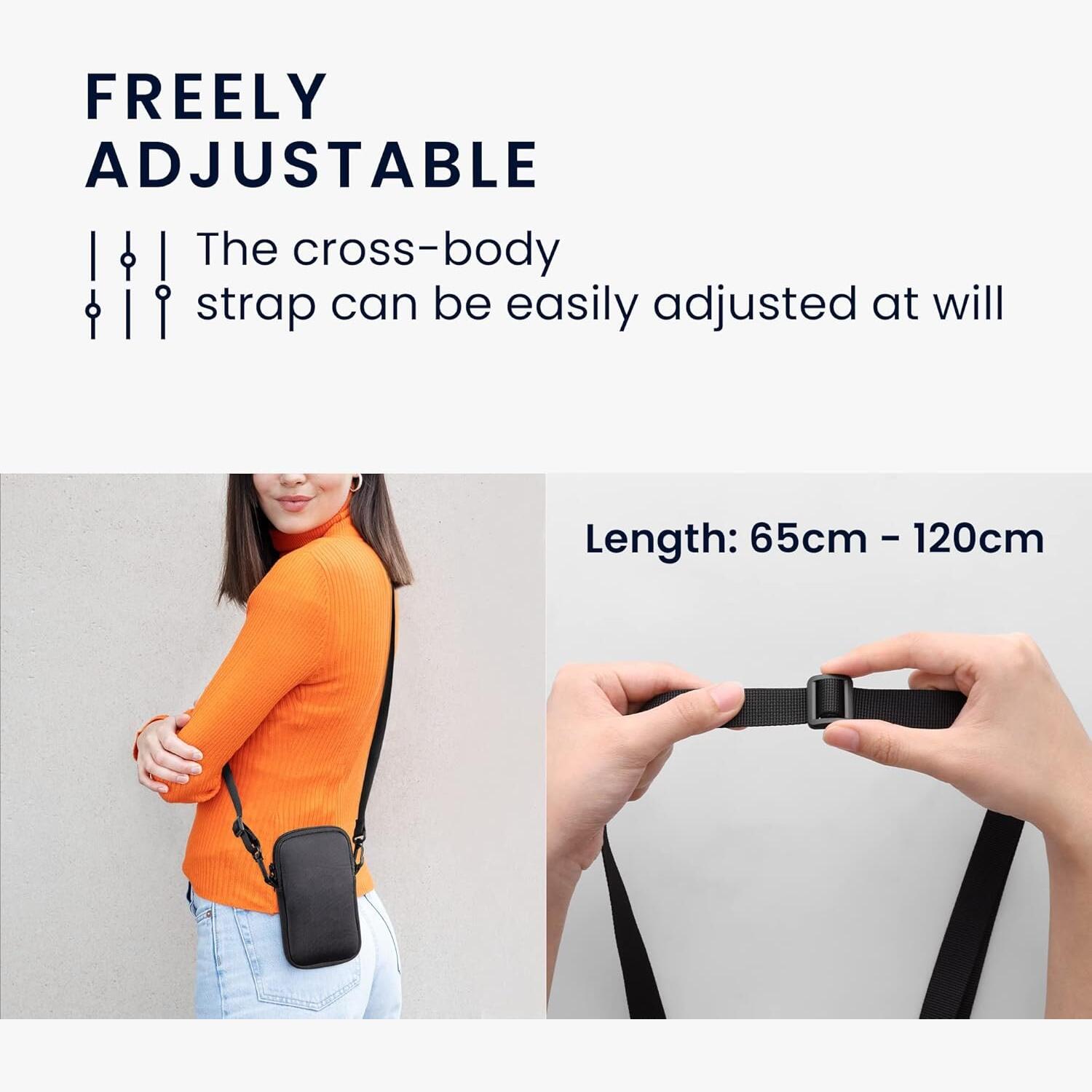Έχει εσωτερικές διαστάσεις 17.7 x 8.5 cm και έτσι είναι συμβατή με πολλά μεγάλα smartphones. Χάρη στο ελαφρύ, μαλακό και εύκαμπτο υλικό, η θήκη έχει υπέροχη αίσθηση και άνετο κράτημα, καθιστώντας την βολική και ευχάριστη στη χρήση. Επιπλέον, διαθέτει και ένα αποσπώμενο ρυθμιζόμενο λουράκι με διαστάσεις 65-120cm με το οποίο μπορείτε είτε να την κρεμάτε στον λαιμό, είτε να την φοράτε "σταυρωτά", τύπου crossbody, ώστε πάντα να έχετε το κινητό σας σε πλήρη ορατότητα, μπροστά σας.