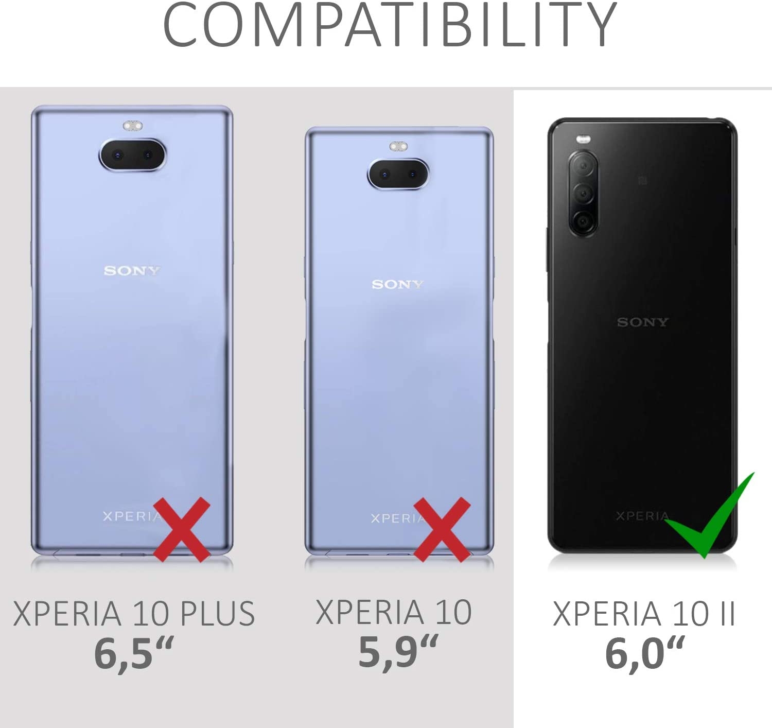 Η θήκη είναι συμβατή μόνο για το Sony Xperia 10 II και όχι με το Sony Xperia 10 ή 10 Plus.
