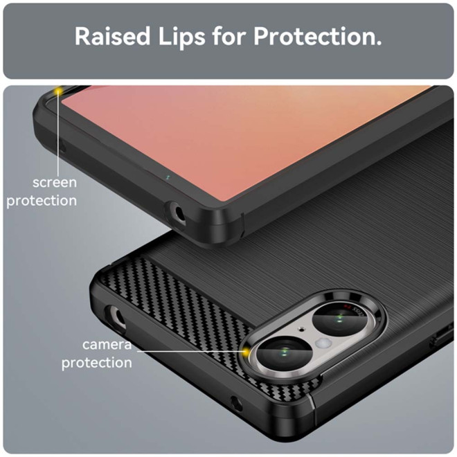 Κατασκευασμένη από θερμοπλαστική πολυουρεθάνη (TPU) που απορροφά τους κραδασμούς, είναι ελαστική με φινίρισμα από ανθρακονήματα και εσωτερικά με κυψελοειδές σχεδιασμό για να προστατεύει το Sony Xperia 5 V από γρατσουνιές, φθορές, πτώσεις ή χτυπήματα.