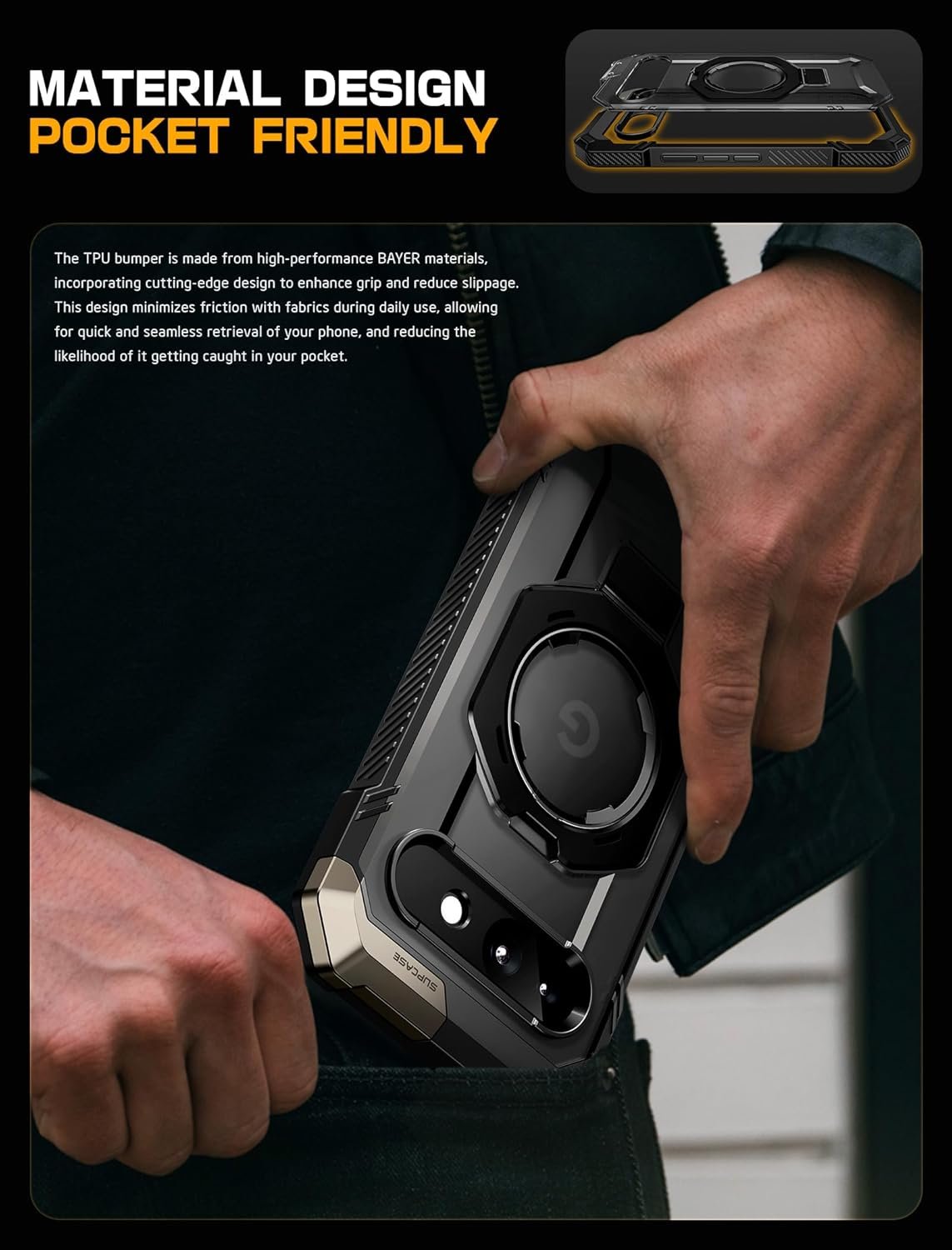 Με φιλικό προς την τσέπη σχεδιασμό, που ελαχιστοποιεί την τριβή με υφάσματα του τηλεφώνου και αντιολισθητική λωρίδα λαβής για σταθερό και άνετο κράτημα. Είναι μία θήκη που σας προσφέρει ανώτερη προστασία και εξαιρετικό design!
