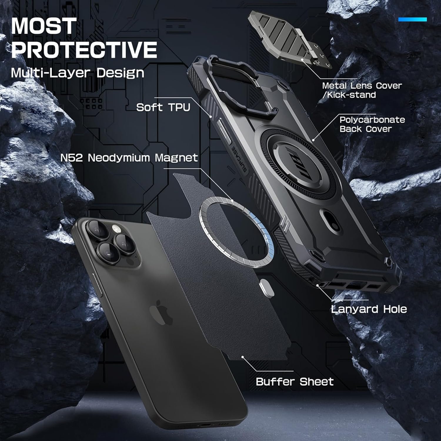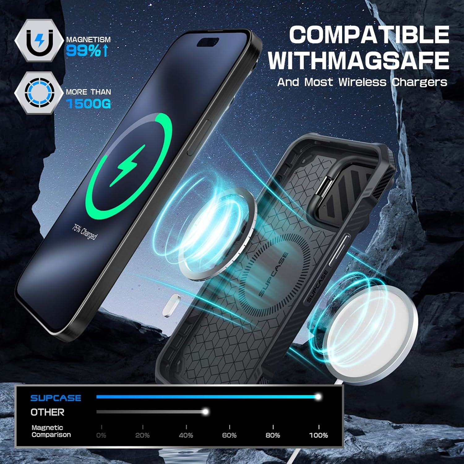 Η ανθεκτική MagSafe θήκη Unicorn Beetle XT Mag από την Supcase, είναι ειδικά σχεδιασμένη για το iPhone 15 Pro Max. Έχει κατασκευαστεί από ένα συνδυασμό μαλακού TPU και πολυκαρβονικού πλαστικού PC, για να είναι εξαιρετικά ανθεκτική σε σκόνες, πτώσεις και χτυπήματα.