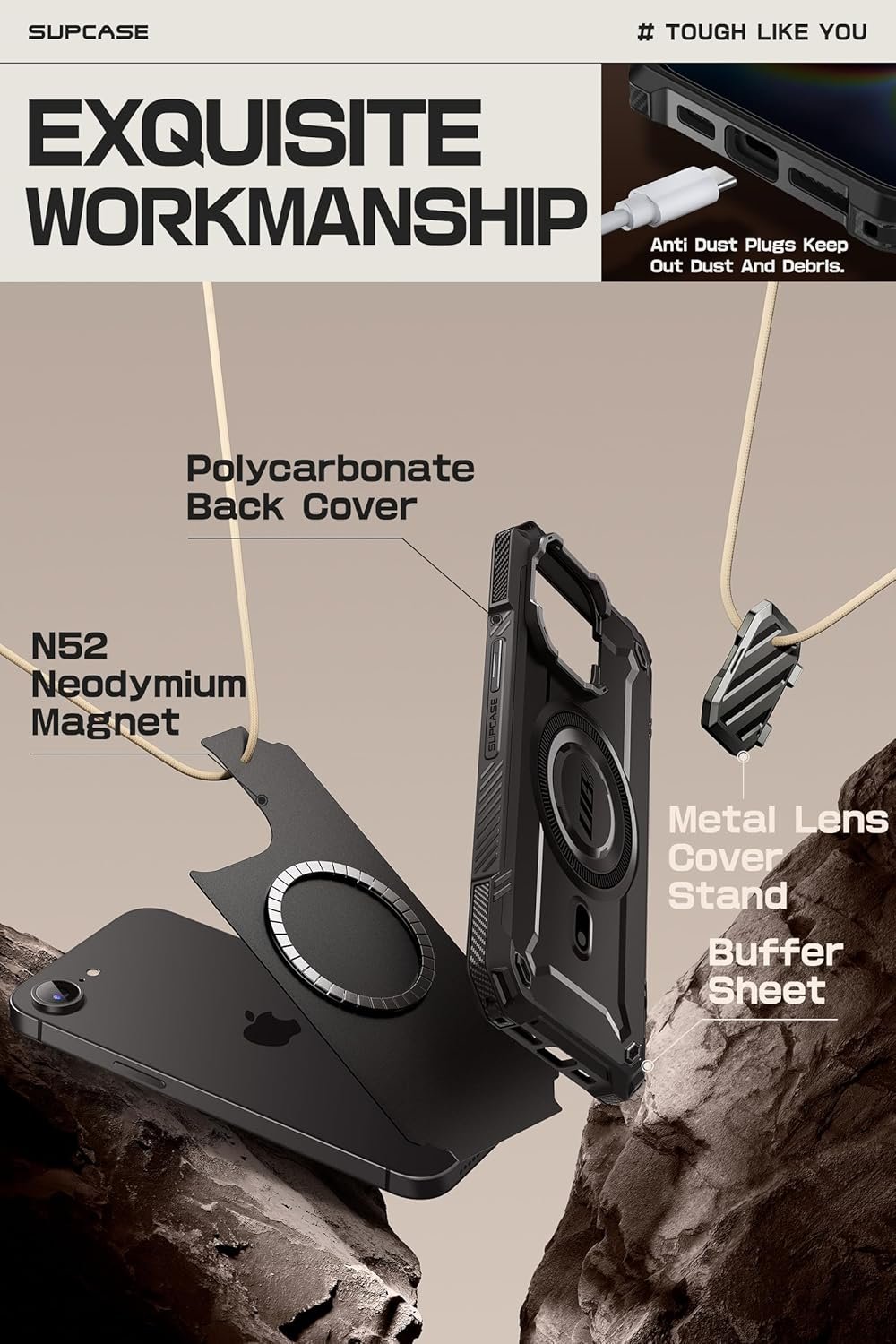 Η ανθεκτική MagSafe θήκη Unicorn Beetle XT Mag από την Supcase, είναι ειδικά σχεδιασμένη για το iPhone 16e. Έχει κατασκευαστεί από ένα συνδυασμό μαλακού TPU και πολυκαρβονικού πλαστικού PC, για να είναι εξαιρετικά ανθεκτική σε σκόνες, πτώσεις και χτυπήματα.