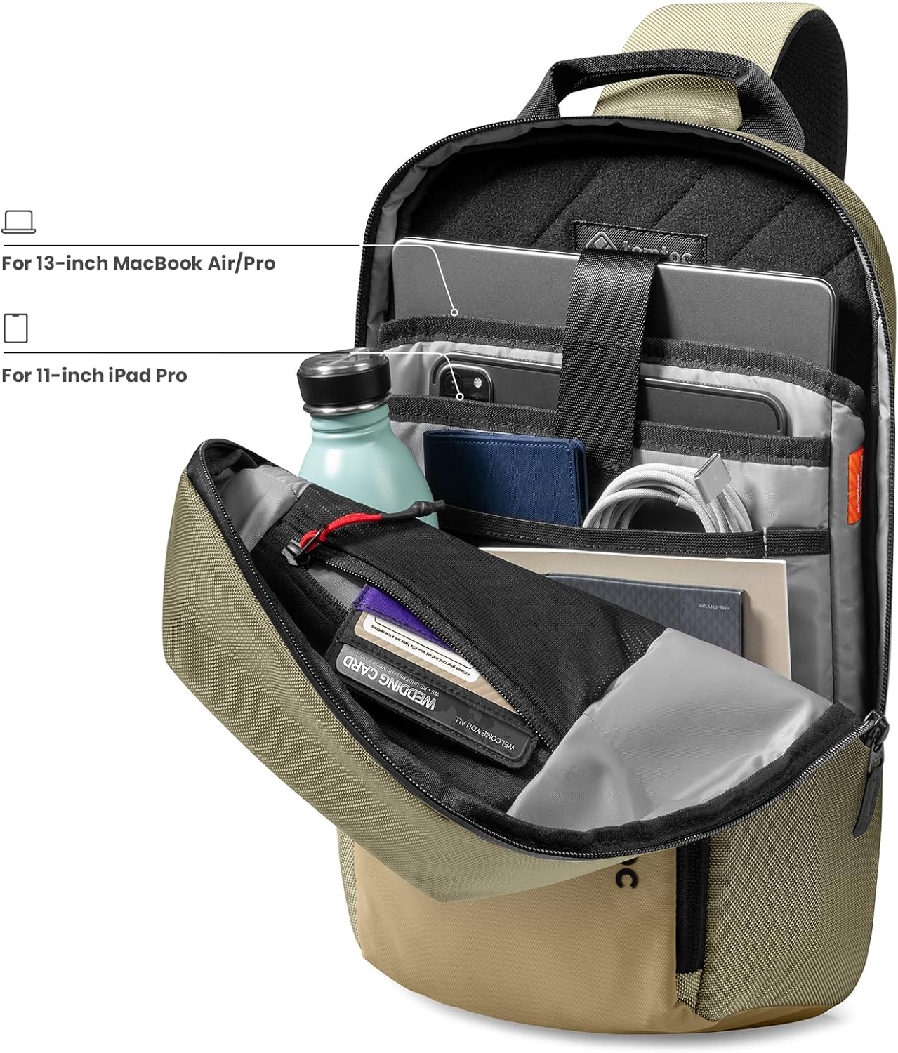 Με πολλές μεγάλες και μικρές τσέπες αλλά και πλαϊνή για ένα μπουκάλι νερό 650ml, καθώς και μια ειδική θήκη για MacBook Air / Pro 13-14 και iPad Pro 11", η οργάνωση των αντικειμένων σας γίνεται εύκολη και αποτελεσματική. Με ειδικό χώρο για τα κλειδιά σας, καλώδια, μέχρι το power bank και το φορτιστή, η τσάντα αυτή είναι έτοιμη να σας συνοδεύσει σε κάθε ταξίδι και κάθε περιπέτεια.