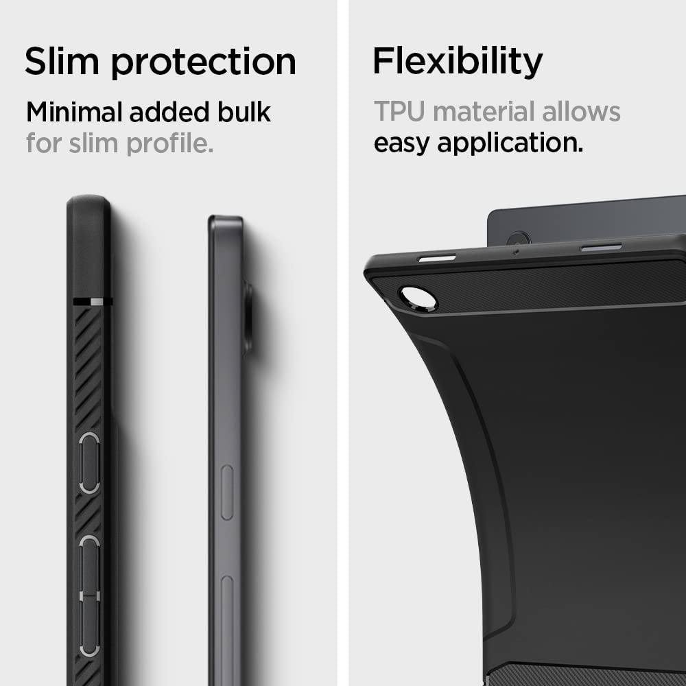 Η θήκη Rugged Armor της Spigen είναι κατασκευασμένη για να εφαρμόζει τέλεια στο Samsung Galaxy Tab A8 10.5" 2021 X200 / X205 και να το προστατεύει από την καθημερινή χρήση, αποτελεσματικά, χωρίς να προσθέτει επιπλέον όγκο στη συσκευή σας.