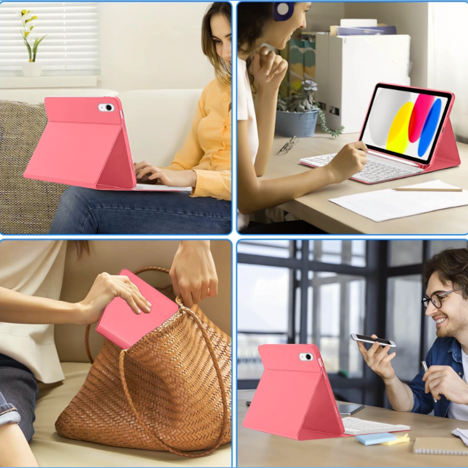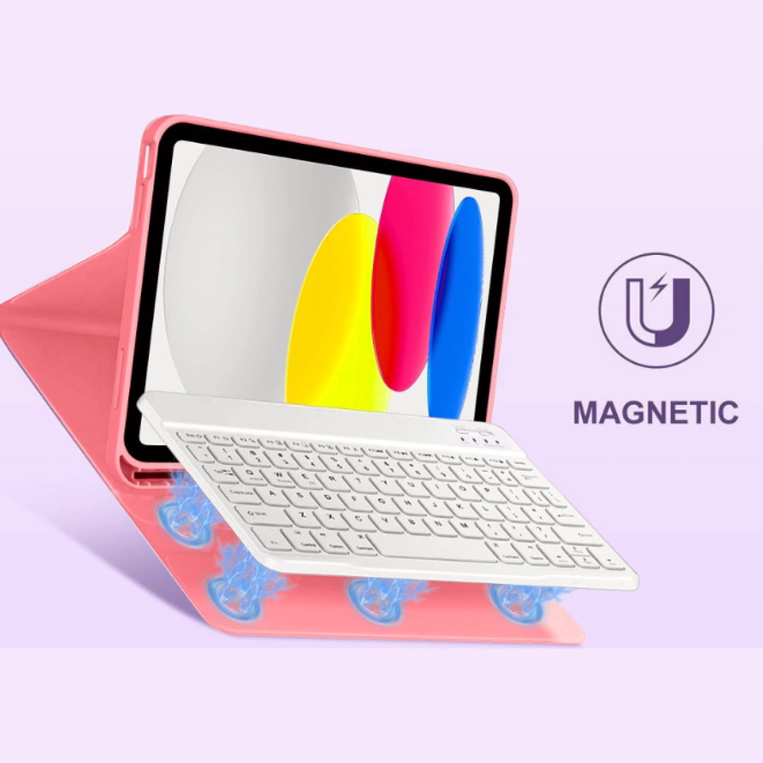 Κατασκευασμένη από ελαφριά ματ ανθεκτική σιλικόνη, αγκαλιάζει απαλά την οθόνη του iPad σας χωρίς να της προκαλεί φθορές. Πρόκειται για μία λεπτή και κομψή θήκη, σχεδιασμένη εργονομικά από εξαιρετικής ποιότητας υλικά. Επιπλέον, διαθέτει ένα μαγνητικό ασύρματο αποσπώμενο πληκτρολόγιο Bluetooth, το οποίο σας προσφέρει 140 ώρες αδιάκοπης εργασίας και παιχνιδιού!