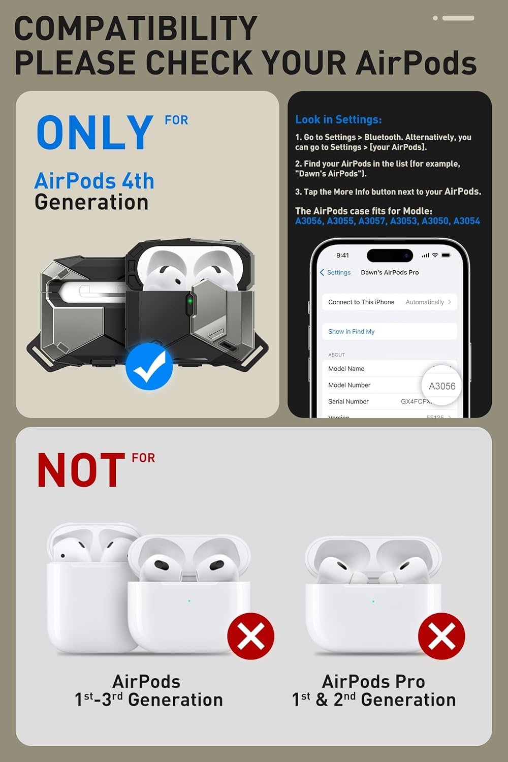 Η θήκη είναι συμβατή μόνο με τα AirPods 4th Gen και όχι με τα Airpods Pro 2nd Gen, 3rd Gen, 2nd Gen / 1st Gen ή Pro 1st Gen.