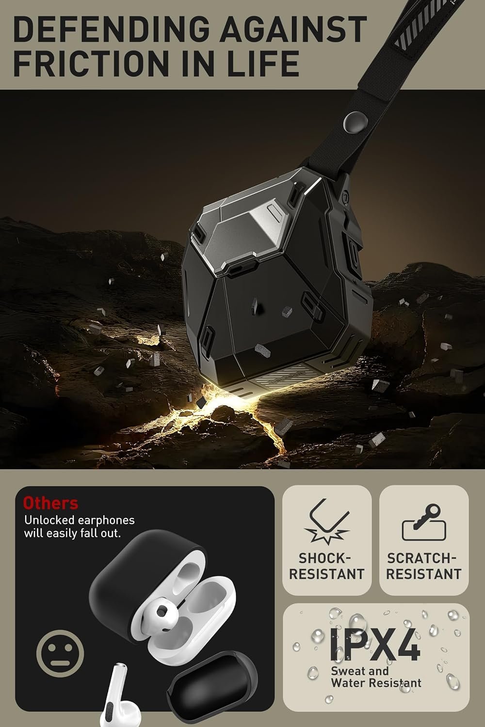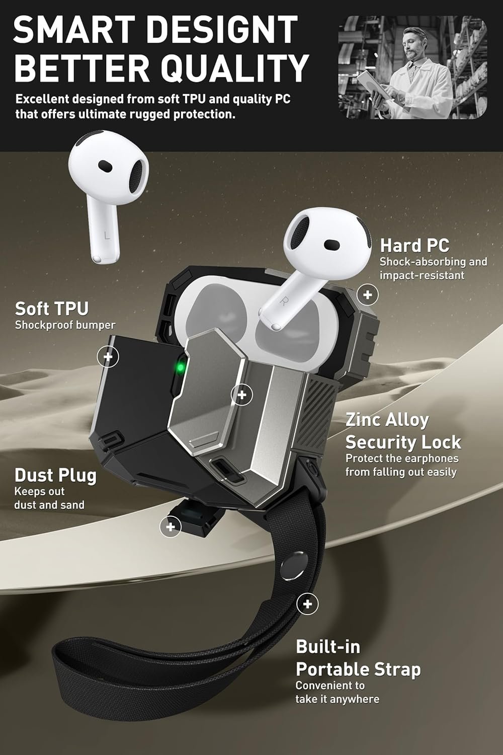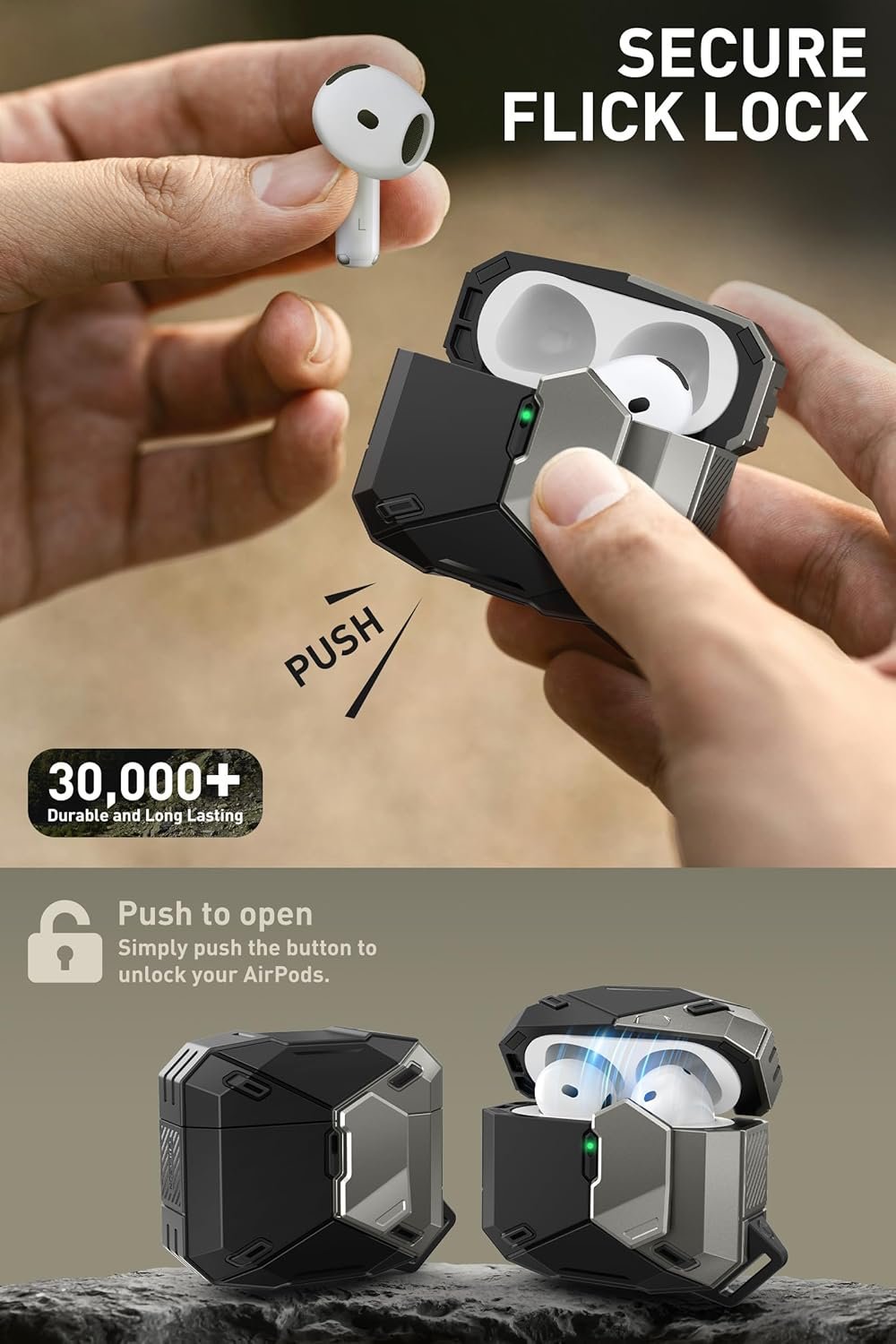 Διαθέτει ασφαλές μαγνητικό κλείδωμα από κράμα ψευδαργύρου, ώστε τα AirPods σας να παραμένουν προστατευμένα από τις τυχαίες πτώσεις. Προσφέρει εύκολο άνοιγμα με το πάτημα ενός κουμπιού, ενώ έχει περάσει άνω από 30.000 κύκλους δοκιμών, ώστε να σας εξασφαλίζει ανθεκτικότητα. Το ενσωματωμένο λουράκι χειρός, διαθέτει Velcro και εφαρμόζει άνετα σε καρπούς κάθε μεγέθους, προσφέροντας ευκολία μεταφοράς και προστασία από απώλεια ή κλοπή.