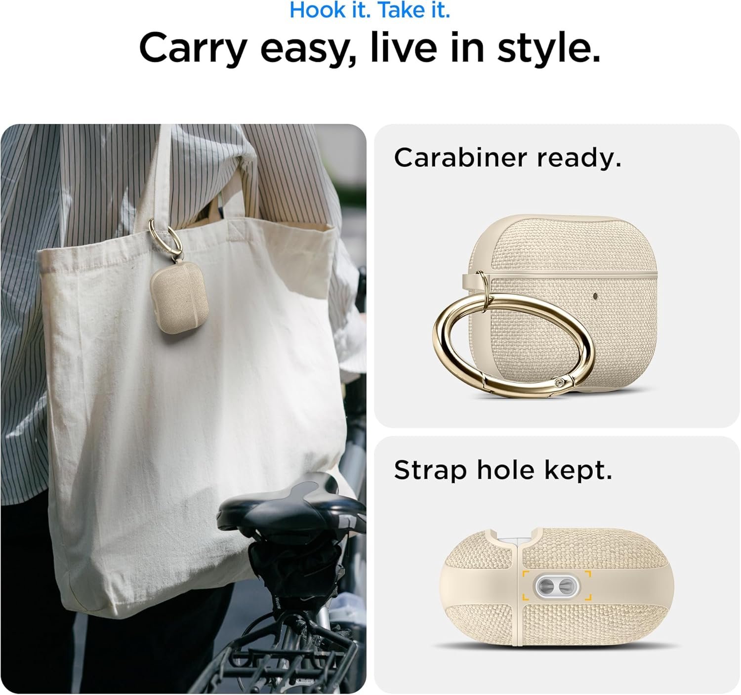 Συμπεριλαμβάνεται επίσης στη θήκη ένα ειδικό καραμπινέρ - μπρελόκ, το οποίο σας προσφέρει τη δυνατότητα να εφαρμόζετε τη θήκη Spigen σε οποιοδήποτε σακίδιο, τσάντα ή όπου αλλού επιθυμείτε. Με το τρόπο αυτό θα έχετε παντού μαζί σας τα ακουστικά, χωρίς να φοβάστε μήπως χαθούν.