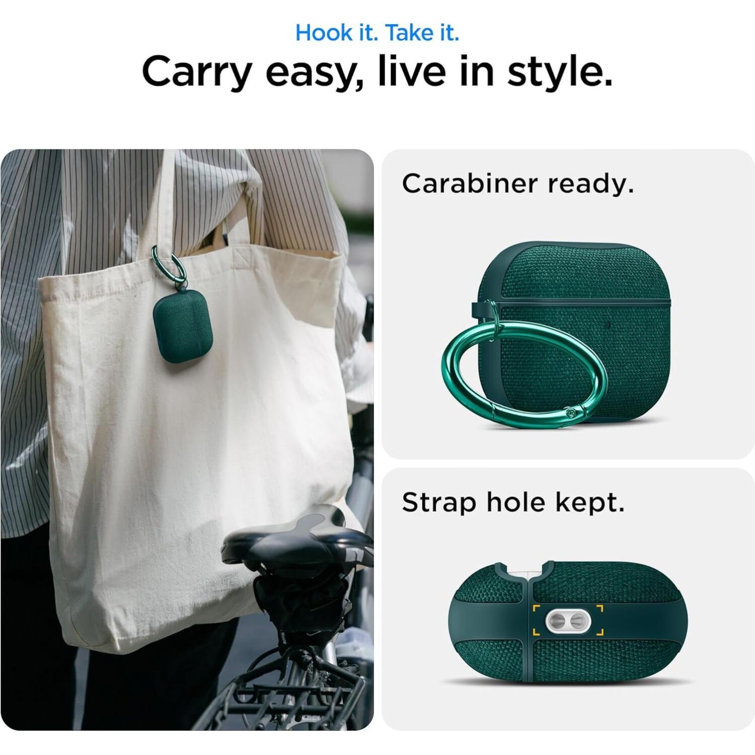 Συμπεριλαμβάνεται επίσης στη θήκη ένα ειδικό καραμπινέρ - μπρελόκ, το οποίο σας προσφέρει τη δυνατότητα να εφαρμόζετε τη θήκη Spigen σε οποιοδήποτε σακίδιο, τσάντα ή όπου αλλού επιθυμείτε. Με το τρόπο αυτό θα έχετε παντού μαζί σας τα ακουστικά, χωρίς να φοβάστε μήπως χαθούν.