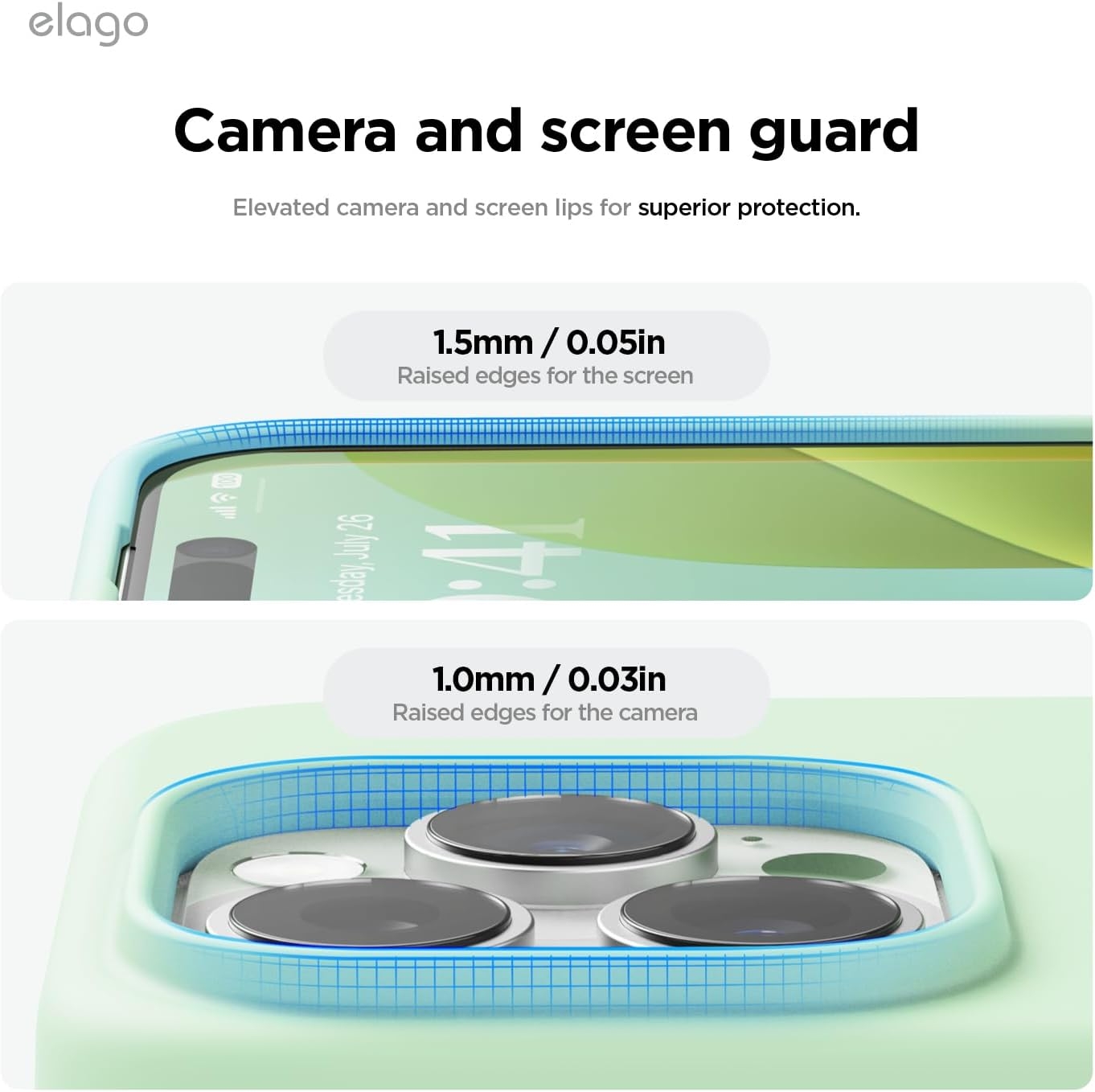 Εσωτερικά η θήκη διαθέτει μια μαλακή επένδυση από μικροΐνες, η οποία είναι σχεδιασμένη προκειμένου να αποτρέπει τις γρατσουνιές στη συσκευή. Μια λεπτή θήκη με υπερυψωμένες άκρες περιμετρικά της οθόνης κατά 1.7mm και 1.3mm γύρω από τη κάμερα, κάτι το οποίο ασφαλίζει επιπλέον από την άμεση επαφή με κάποια επιφάνεια. Είναι συμβατή ακόμα και με ασύρματη φόρτιση κι έτσι δε χρειάζεται να την αφαιρέσετε προκειμένου να ανανεώσετε τη μπαταρία στο κινητό σας.