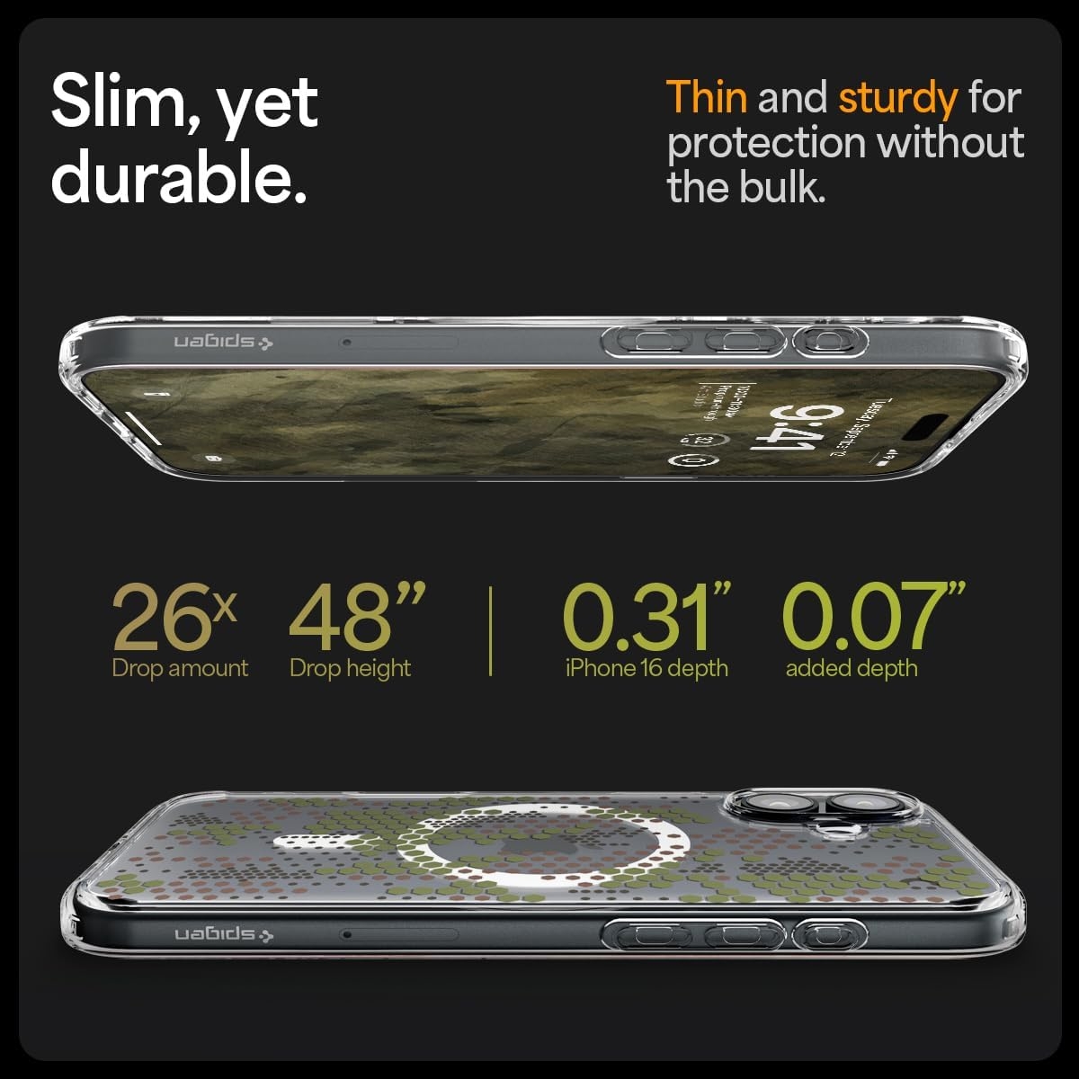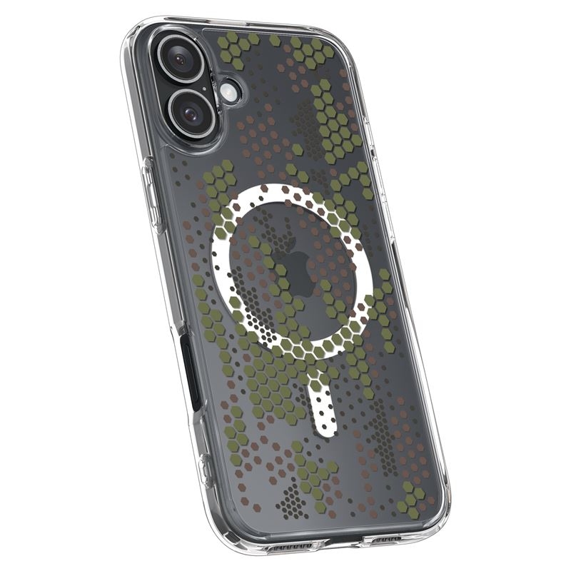Το Digital Camo αποτελεί μια σύγχρονη εκδοχή του κλασικού καμουφλάζ της Cyrill, συνδυάζοντας την κομψότητα της κρυστάλλινης διαφάνειας με την ανθεκτικότητα της θήκης Ultra Hybrid MagFit της Spigen. Το μοτίβο καμουφλάζ εκτυπώνεται σε δύο στρώσεις, μπροστά και πίσω, προσδίδοντας στην θήκη μια μοναδική, τρισδιάστατη αισθητική που την ξεχωρίζει.