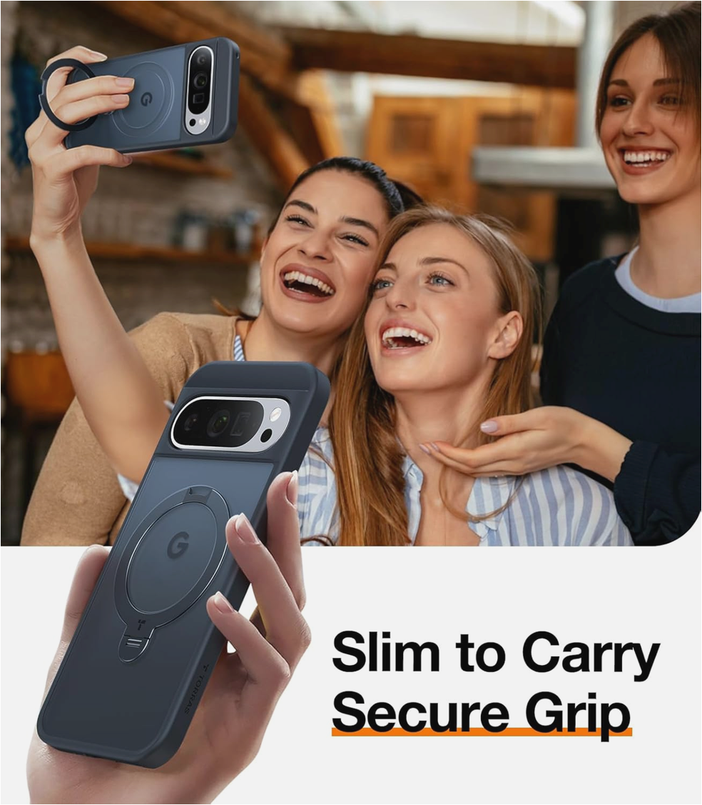 Η θήκη Ostand Spin της Torras είναι ειδικά σχεδιασμένη για το αγαπημένο σας Google Pixel 9 Pro XL! Η κομψή της απόχρωση προσδίδει μία μοντέρνα εκλεπτυσμένη εμφάνιση στο Google Pixel 9 Pro XL, κάνοντάς το να ξεχωρίζει, ενώ το λεπτό της προφίλ περιλαμβάνει μία νανο-ελαιοφοβική και υδροφοβική επίστρωση.