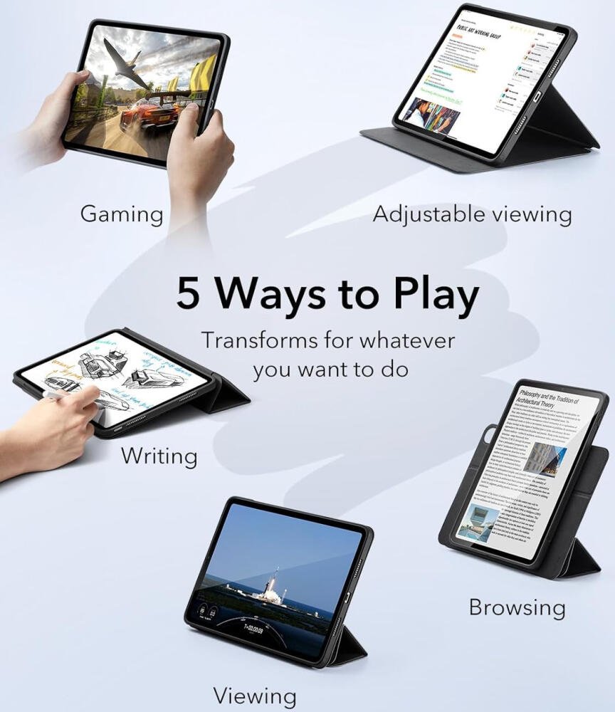 Προστατέψτε το iPad Air 13" 2025 / 2024, από χτυπήματα και γρατζουνιές με αυτή την κομψή θήκη Rebound Hybrid 360 της ESR. Αποτελεί τον ιδανικό τρόπο για την προστασία και μεταφορά του νέου σας πολύτιμου iPad με ματ φινίρισμα για περισσότερο στυλ! Είναι ένας συνδυασμός προστατευτικής θήκης και αποσπώμενου μαγνητικού καλύμματος, που μπορεί να αφαιρεθεί ανά πάσα στιγμή, μετατρέποντας το σε μία πρακτική βάση κατάλληλη και για άλλες συσκευές.