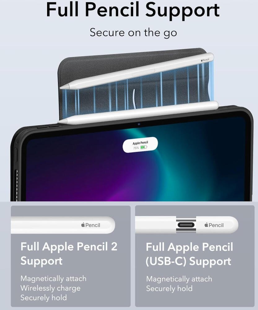 Χάρη στον έξυπνο σχεδιασμό της μπορεί να χρησιμοποιηθεί και σαν βάση στήριξης ώστε να παρακολουθείτε το υλικό σας όπως video, φωτογραφίες ή ακόμα και ταινίες και να εργάζεστε με την επιθυμητή γωνία θέασης χωρίς να το κρατάτε στα χέρια σας, αλλά επίσης είναι πλήρως συμβατή με την φόρτιση και την μαγνητική προσάρτηση του Apple Pencil Pro!