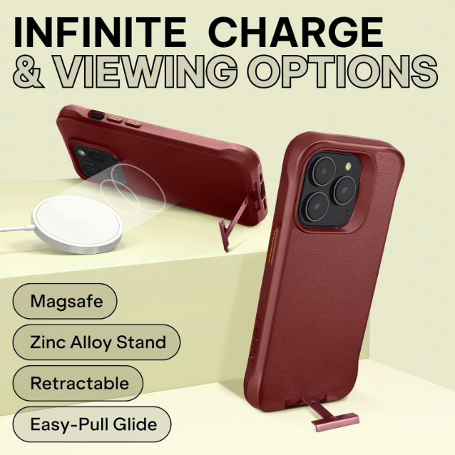 Η μοναδική ενσωματωμένη βάση kickstand από κράμα ψευδάργυρου επιτρέπει την οριζόντια και κάθετη προβολή, καθιστώντας την ιδανική για παρακολούθηση βίντεο, βιντεοκλήσεις ή gaming, ενώ όταν δεν χρησιμοποιείται, αναδιπλώνεται διακριτικά στο πίσω μέρος της θήκης.