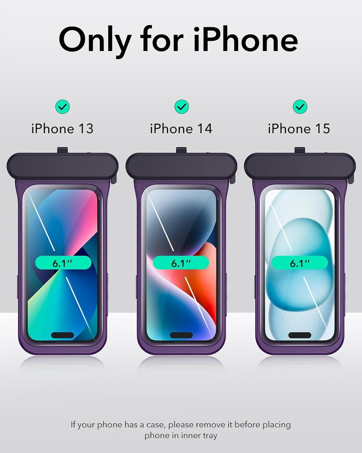 Η θήκη είναι συμβατή μόνο με το iPhone 15 / 14 / 13 και όχι με το iPhone 15 Pro, 15 Pro Max, 15 Plus, 14 Pro, 14 Plus, 14 Pro Max, 13 Pro, 13 Pro Max ή 13 mini.