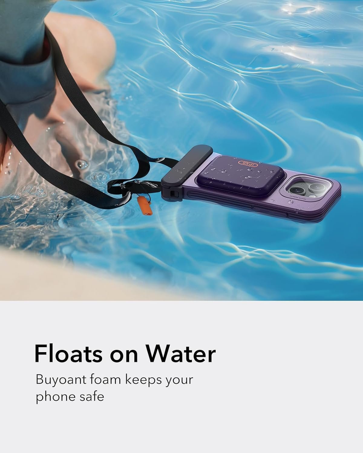 Η θήκη συνοδεύεται από ένα ρυθμιζόμενο λουράκι λαιμού για εύκολη μεταφορά, ενώ το υλικό της κρατά το τηλέφωνό σας ασφαλές στην επιφάνεια του νερού. Επιπλέον, προσφέρει χώρο για αποθήκευση δύο καρτών και ενός χαρτονομίσματος, κάνοντας την ιδανική για τις εξορμήσεις σας στην παραλία!