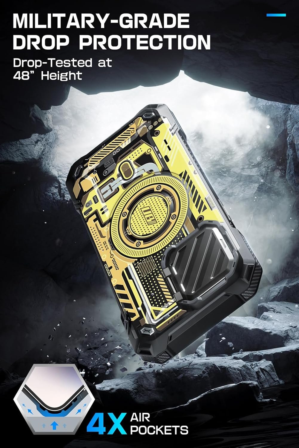 Στη πίσω όψη της ακόμη, περιλαμβάνει μια στρώση από πιο ενισχυμένο TPU. Είναι μια θήκη, η οποία έχει περάσει από 26 ειδικούς ελέγχους, έχοντας εξασφαλίσει τη πιστοποίηση στρατιωτικών προδιαγραφών ΜΙL-STD810G-516.6. Πρακτικά αυτό σημαίνει ότι είναι ιδανική ενάντια στις πτώσεις, καθώς έχει πέσει από ύψος 1.20 m χωρίς να πάθει απολύτως τίποτα.