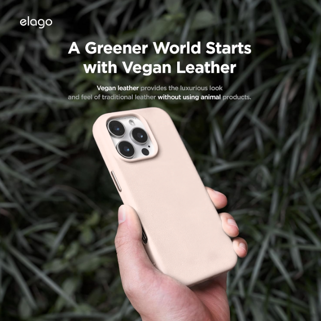 Είναι κατασκευασμένη από 100% vegan δέρμα, το οποίο αποτελεί μία πιο βιώσιμη επιλογή, μειώνοντας το αποτύπωμα άνθρακα της θήκης σε σύγκριση με το δέρμα ζώων. Εκτός από τα περιβαλλοντικά οφέλη, προσφέρει εξαιρετική αντοχή, συμβάλλοντας στη μεγαλύτερη διάρκεια ζωής της θήκης σας!
