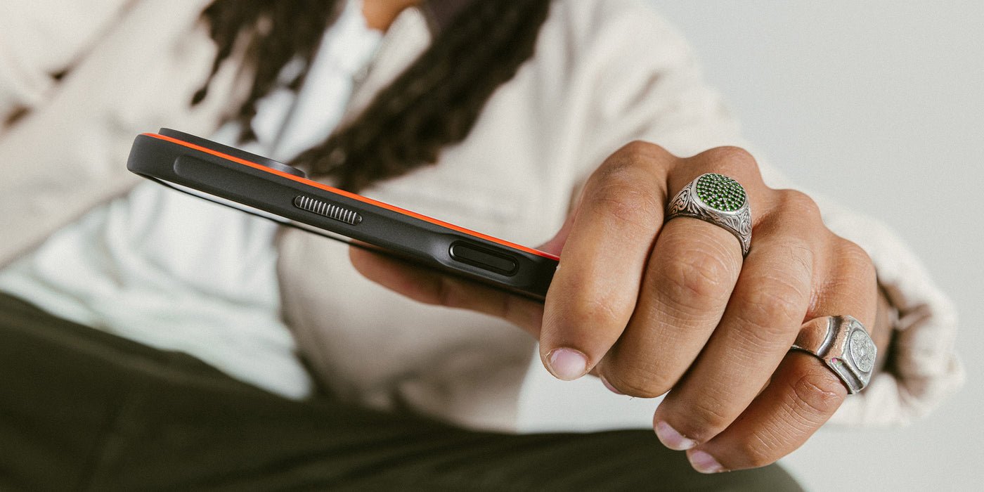Κατασκευασμένη από μαλακή πολυουρεθάνη TPU περιμετρικά, με υψηλής ποιότητας μεταλλικά κουμπιά από ανοδιωμένο αλουμίνιο και σκληρό PC στην πλάτη, για ισχυρή προστασία από χτυπήματα και γρατζουνιές. Είναι μία θήκη με υβριδικό σχεδιασμό και με αντιολισθητικό φινίρισμα στις άκρες, το οποίο εγγυάται ένα ασφαλές κράτημα.