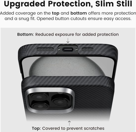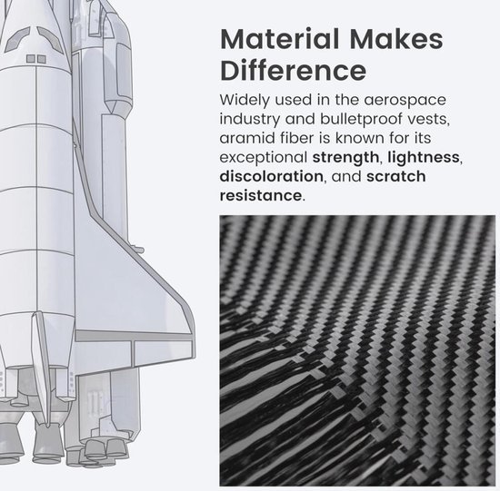 Η θήκη είναι κατασκευασμένη με χρήση ινών αραμιδίου αεροδιαστημικής ποιότητας, η οποία είναι 5 φορές ισχυρότερη από το ατσάλι αλλά είναι περίπου 5 φορές ελαφρύτερη. Προσφέρει μινιμαλιστικό στυλ, ώστε να απολαύσετε τον αυθεντικό σχεδιασμό του iPhone 16 Pro και να εκτιμήσετε την ομορφιά του όσο το δυνατόν περισσότερο. Η κοπή λοξοτομής κάνει τη θήκη να φαίνεται πιο λεπτή και πιο άνετη στο κράτημα.