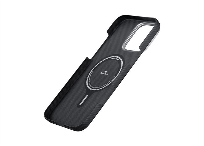 Μέσω αυτής της διαδικασίας, οι μαγνήτες επικαλύπτονται πλήρως από ίνες αραμιδίου και ρητίνη, καθώς αποκτούν μια διαφανή όψη που μοιάζει με κεχριμπάρι. Ακόμη και με τους ενσωματωμένους μαγνήτες MagSafe, το πάχος της είναι μόλις 0.85mm, 600D και με ελάχιστο βάρος σχεδόν 17gr, είναι ελαφρύτερη και από 2 νομίσματα. Χρησιμοποιώντας την τεχνολογία MagSafe SlimBoard™2.0, ενισχύθηκαν οι ισχυροί μαγνήτες κάνοντας τη θήκη λεπτή και ελαφριά.
