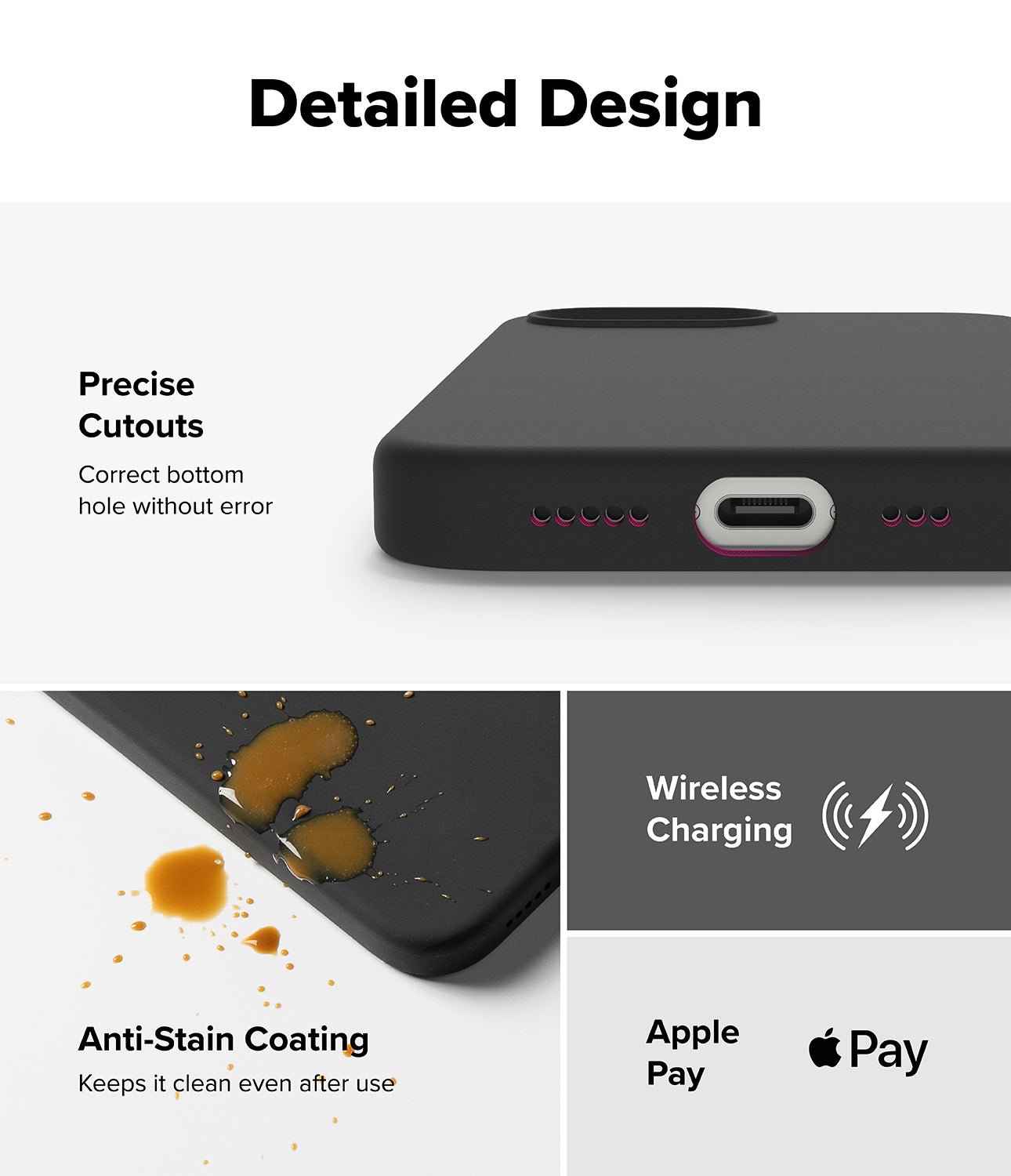 Επιπλέον, έχει σχεδιαστεί με μία υψηλής ποιότητας επίστρωση η οποία προστατεύει την θήκη σας από δαχτυλιές και βρομιές. Το λείο και μεταξένιο υλικό υγρής σιλικόνης, σας προσφέρει απαλή αίσθηση, ενώ ταυτόχρονα είναι φιλικό στο περιβάλλον και στο δέρμα σας. Ο ενσωματωμένος μαγνητικός δακτύλιος MagSafe, ενισχύει τη συνδεσιμότητα και την χρήση φορτιστών και αξεσουάρ MagSafe.
