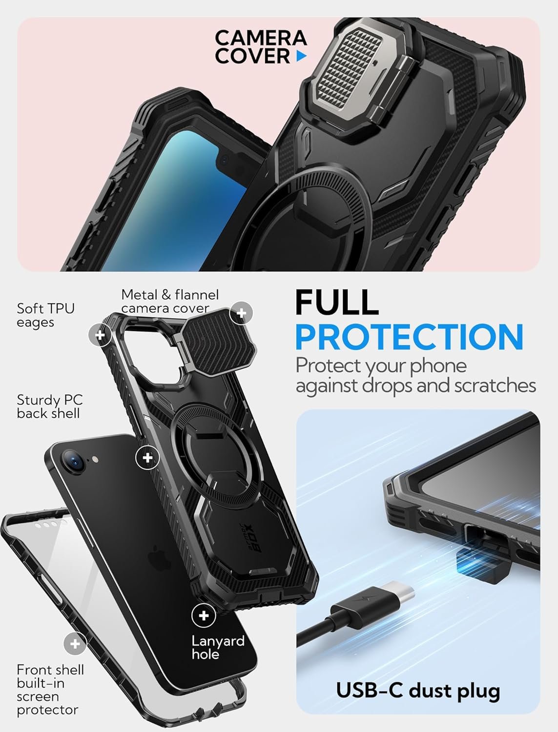 Η ανθεκτική MagSafe θήκη i-Blason Armorbox Mag από την Supcase είναι ειδικά σχεδιασμένη για το iPhone 16e. Έχει κατασκευαστεί από ένα συνδυασμό μαλακού TPU και πολυκαρβονικού πλαστικού PC, για να είναι εξαιρετικά ανθεκτική σε σκόνες, πτώσεις και χτυπήματα.