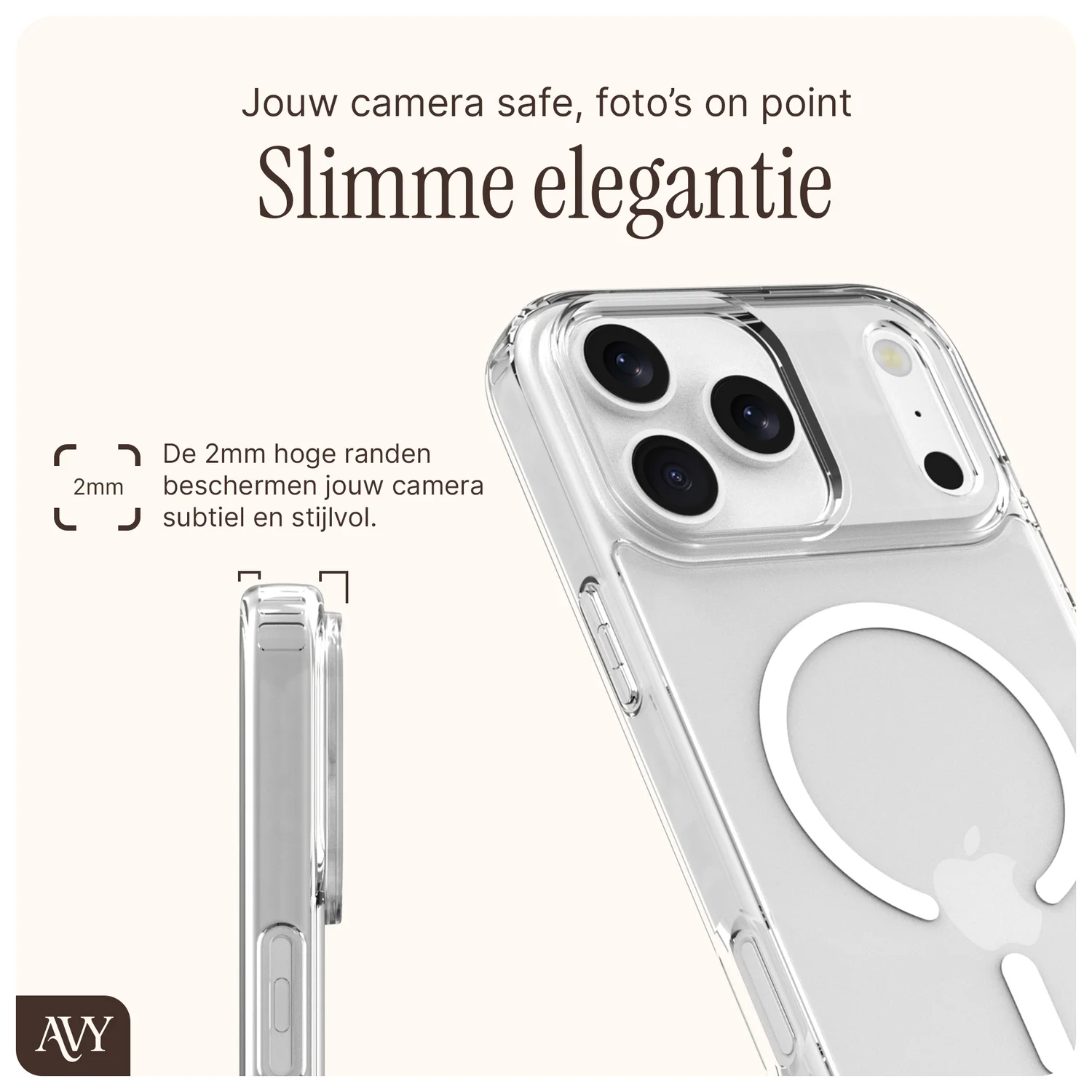 Προστατέψτε τo αγαπημένο σας iPhone 17 Pro και διατηρήστε το στην αρχική του κατάσταση, με την κομψή διάφανη θήκη της AVY! Κατασκευασμένη από PC στην πλάτη και TPU περιμετρικά της οθόνης, για προστασία από χτυπήματα και γρατζουνιές. Διαθέτει μαγνητικό δακτύλιο, συμβατό με αξεσουάρ MagSafe και Qi2, όπως φορτιστή, βάσεις γραφείου, αυτοκινήτου και finger holder.