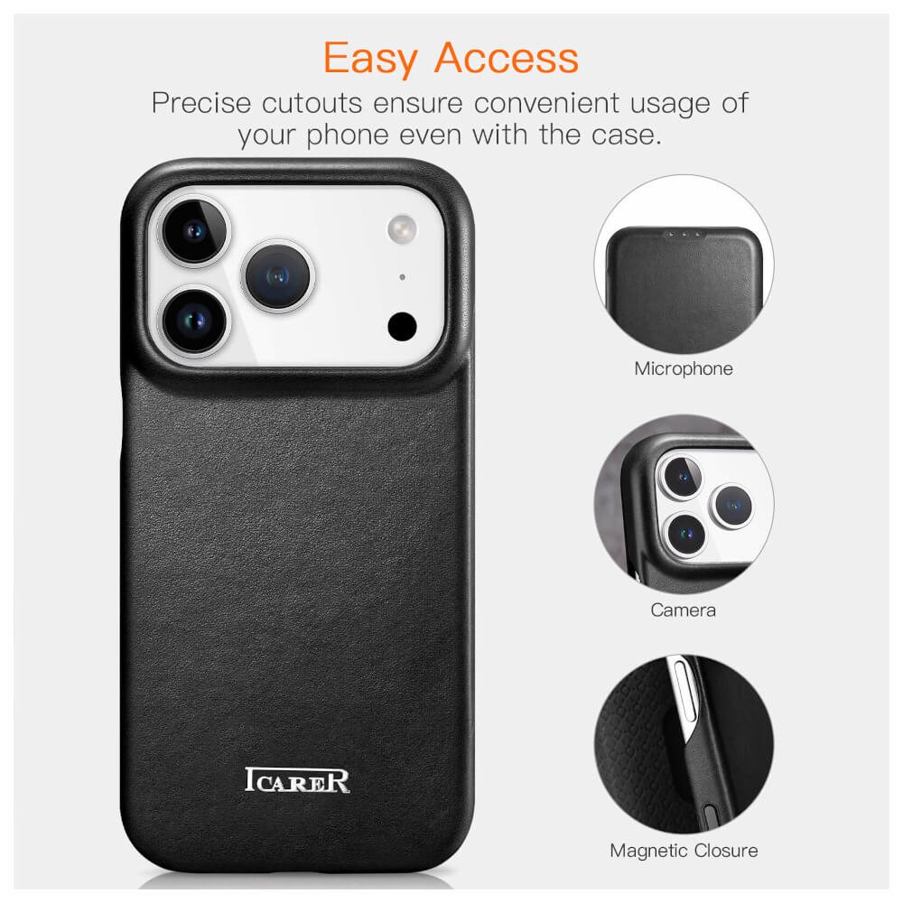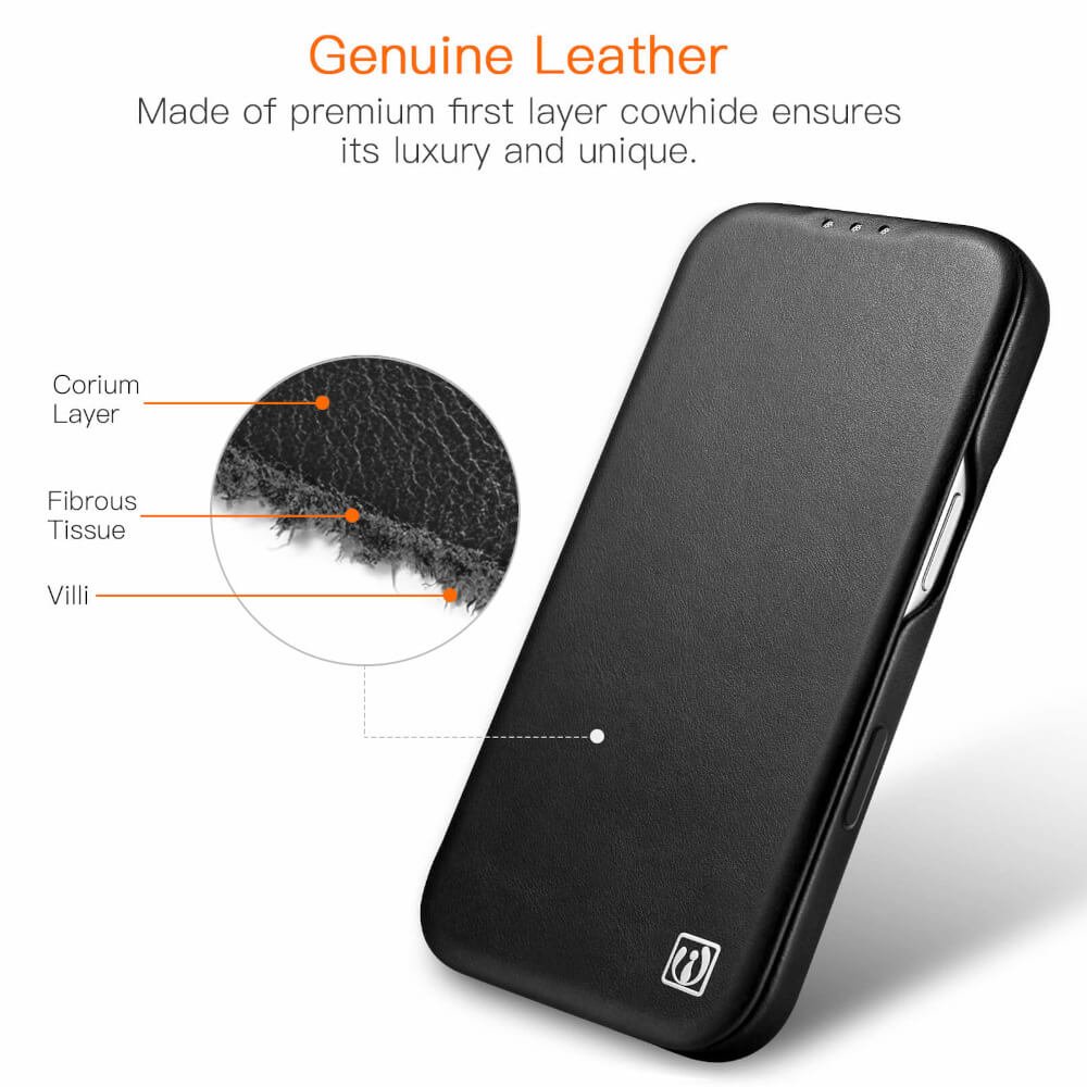 Η θήκη Curved Edge Leather Folio with Magsafe της iCarer είναι μία πολυτελή MagSafe Flip θήκη, ειδικά σχεδιασμένη για το αγαπημένο σας iPhone 17 Pro. Είναι μία εξαιρετικά κομψή θήκη, η οποία θα προσθέσει λάμψη και πλήρη προστασία στο αγαπημένο σας smartphone.